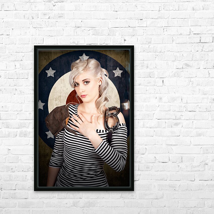 Military pin up woman taking airplane pilot oath Picture Frame Printing