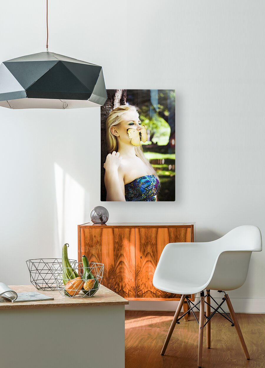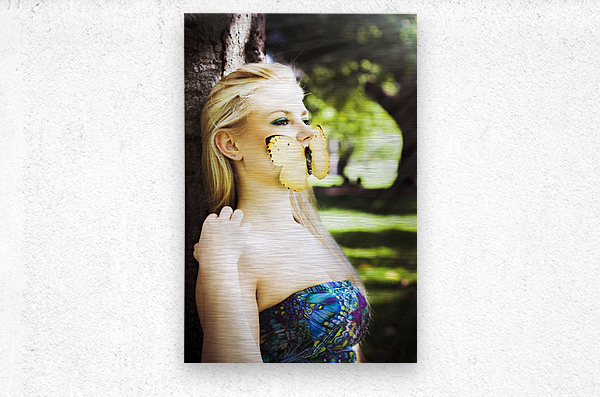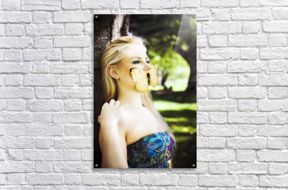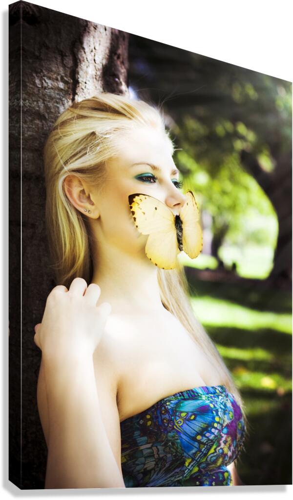 Gorgeous Blonde Woman Silenced By A Butterfly Over Her Mouth While Sitting Against A Tree In A Enchanted Forest Image Titled Beauty In Silence