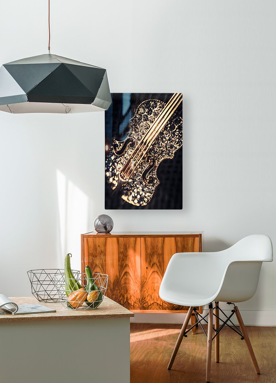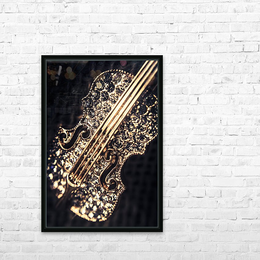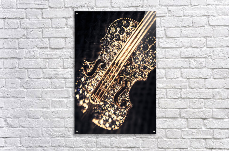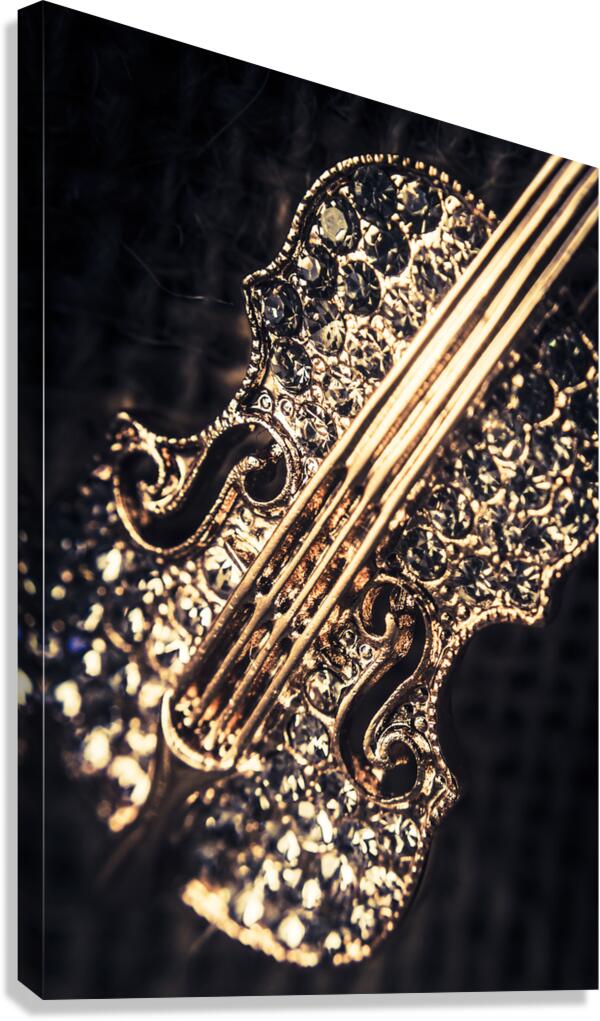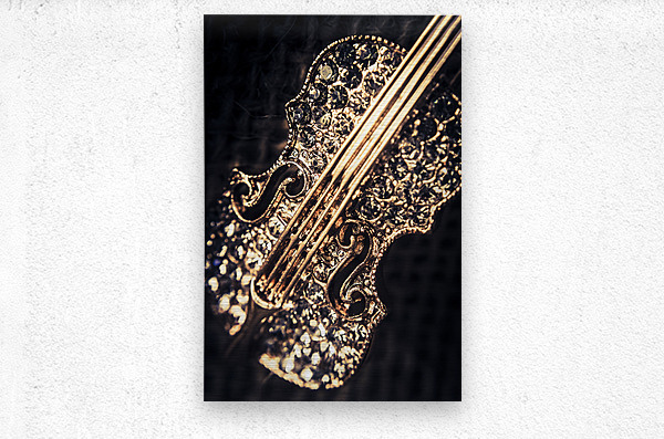 Artistic still life photo on a fancy diamond laced violin playing songs of orchestra opulence. Classical performing art