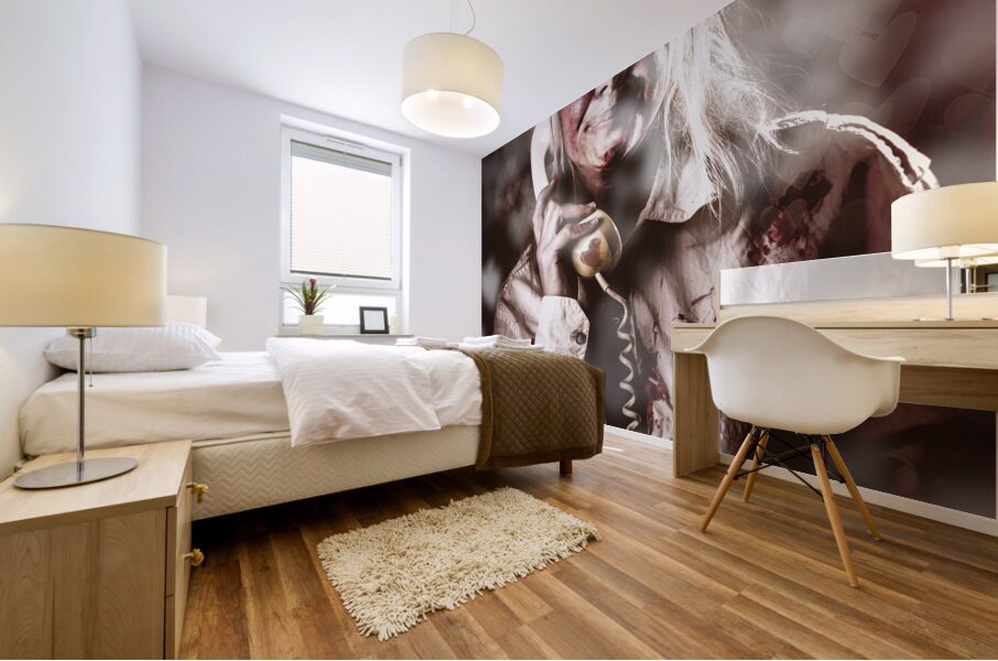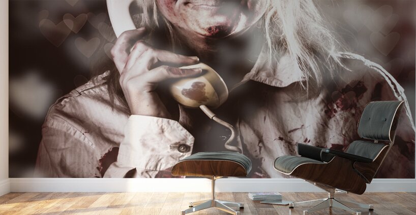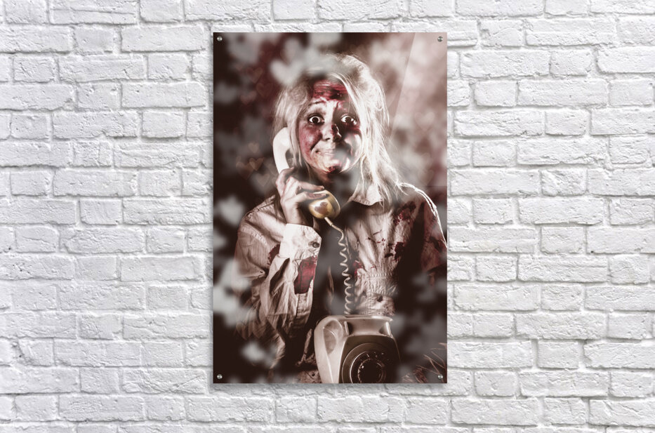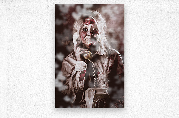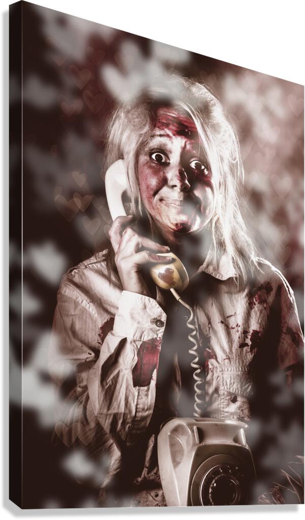 ABOUT THIS ARTWORK: ZOMBIE GIRL MAKING PHONE CALL TO DEAD VALENTINE