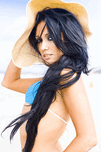 YOUNG BRUNETTE WOMAN VACATIONING AT THE BEACH