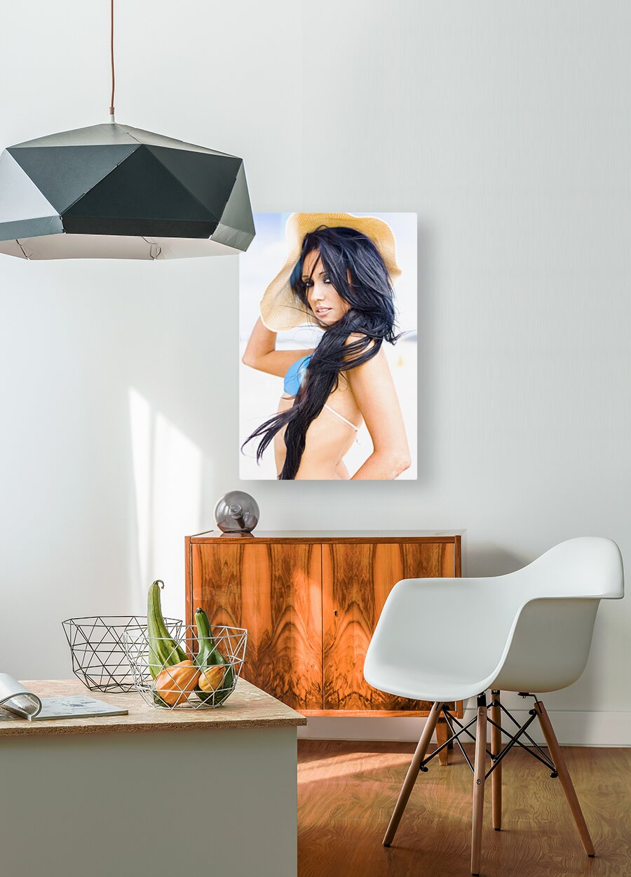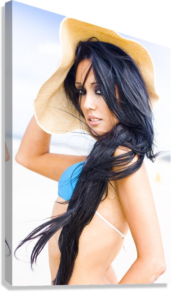Get this artwork "Young Brunette Woman Vacationing At The Beach" in a framed print.