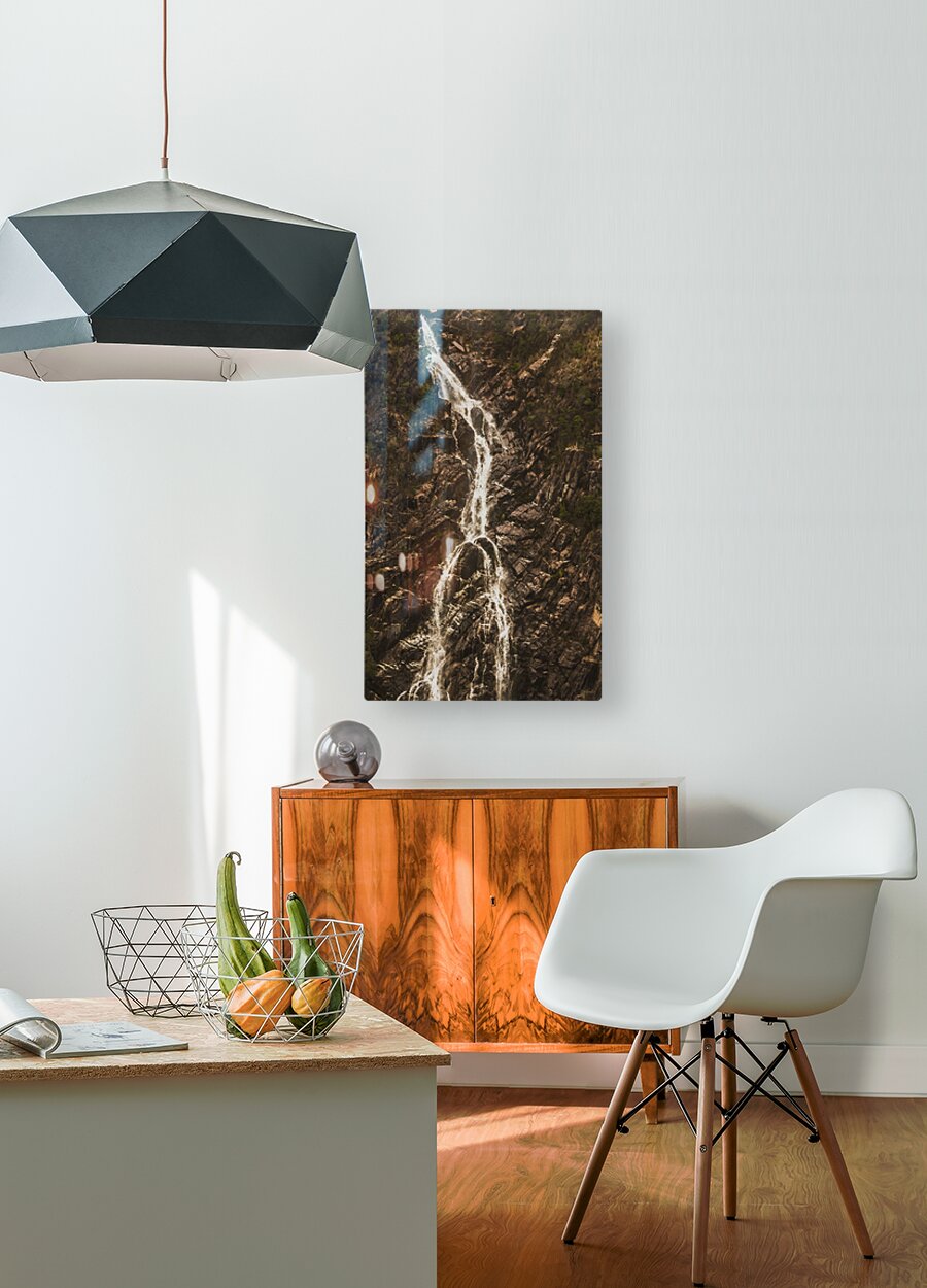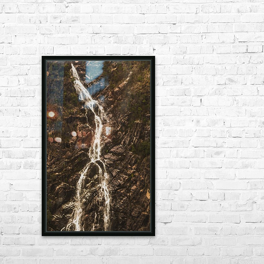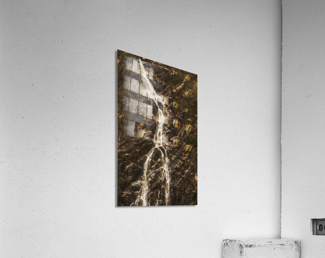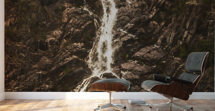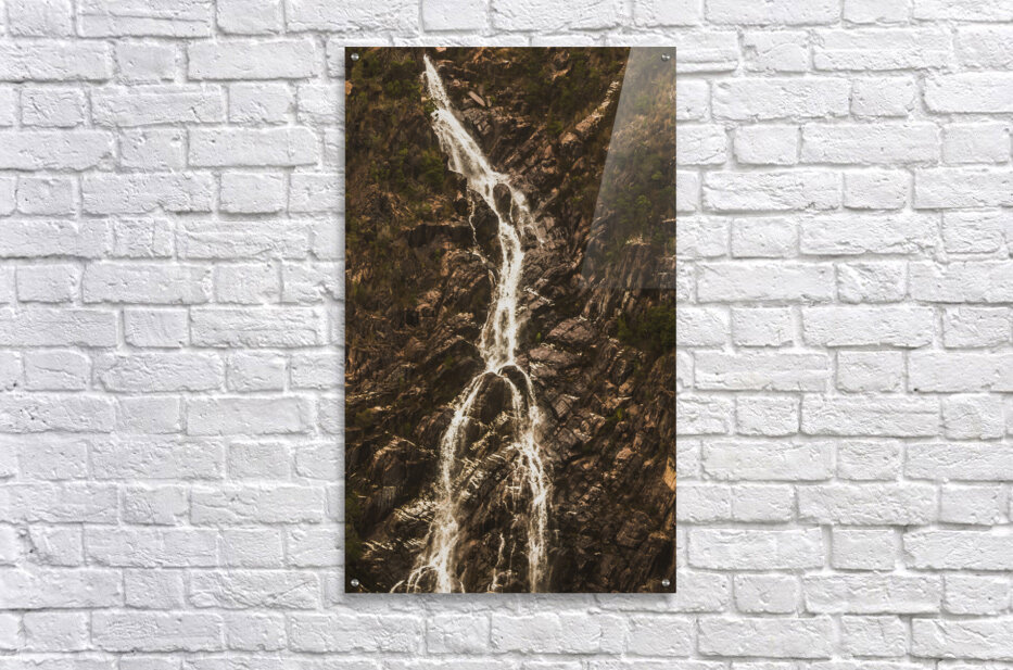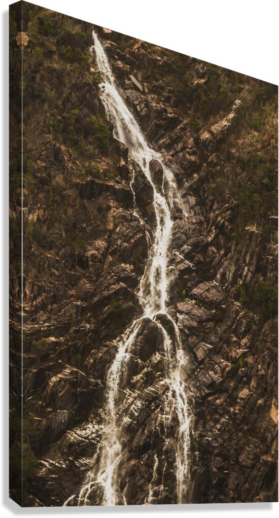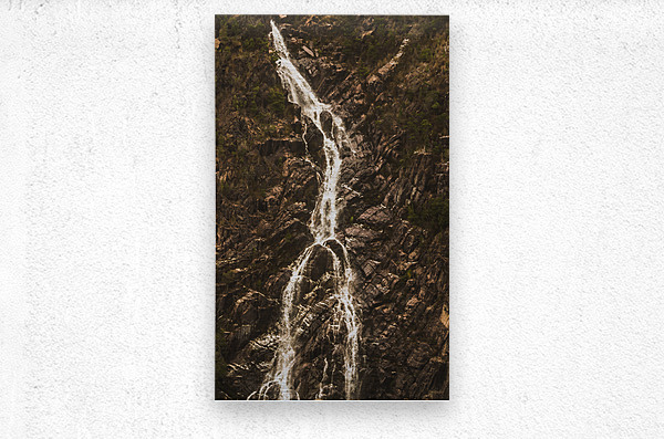 Fine art nature still on a splashing cliff face water fall of ragged countrified design. Horsetail Falls Queenstown Western Tasmania Australia