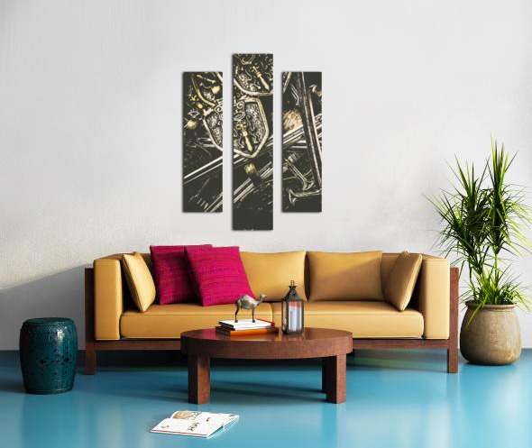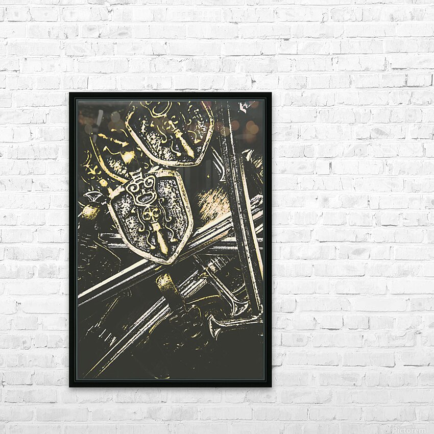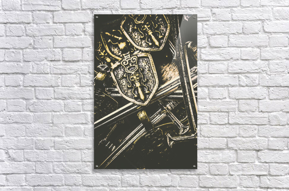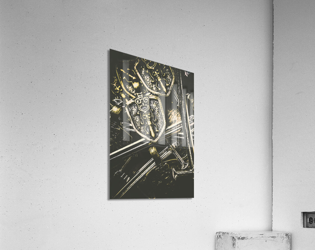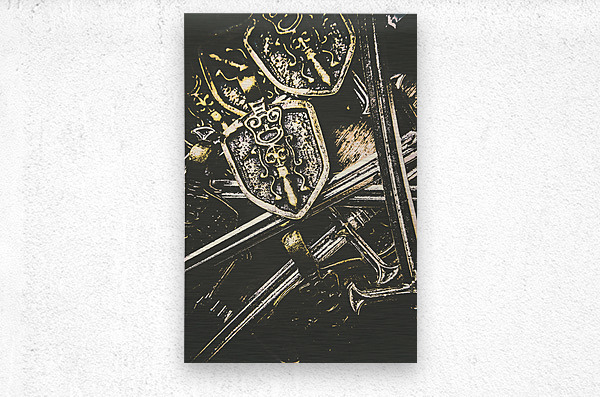 Fine art scene on a host of historic medieval weapons from ancient battles of nobility