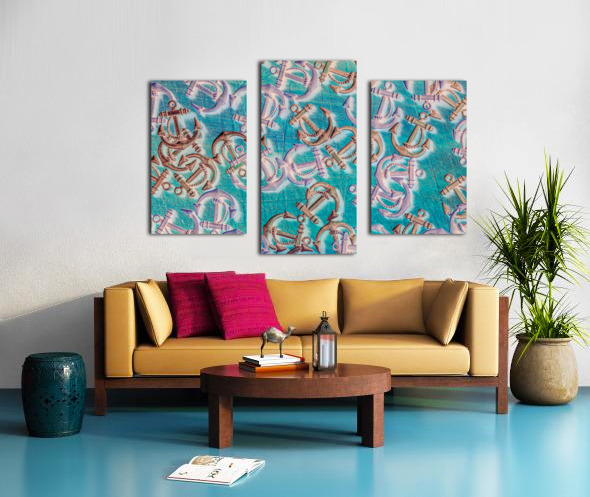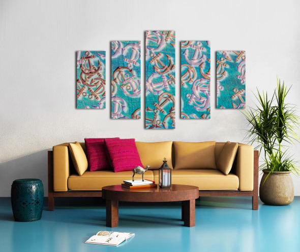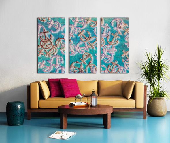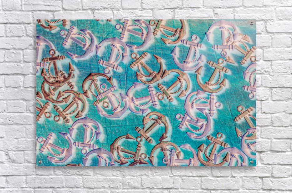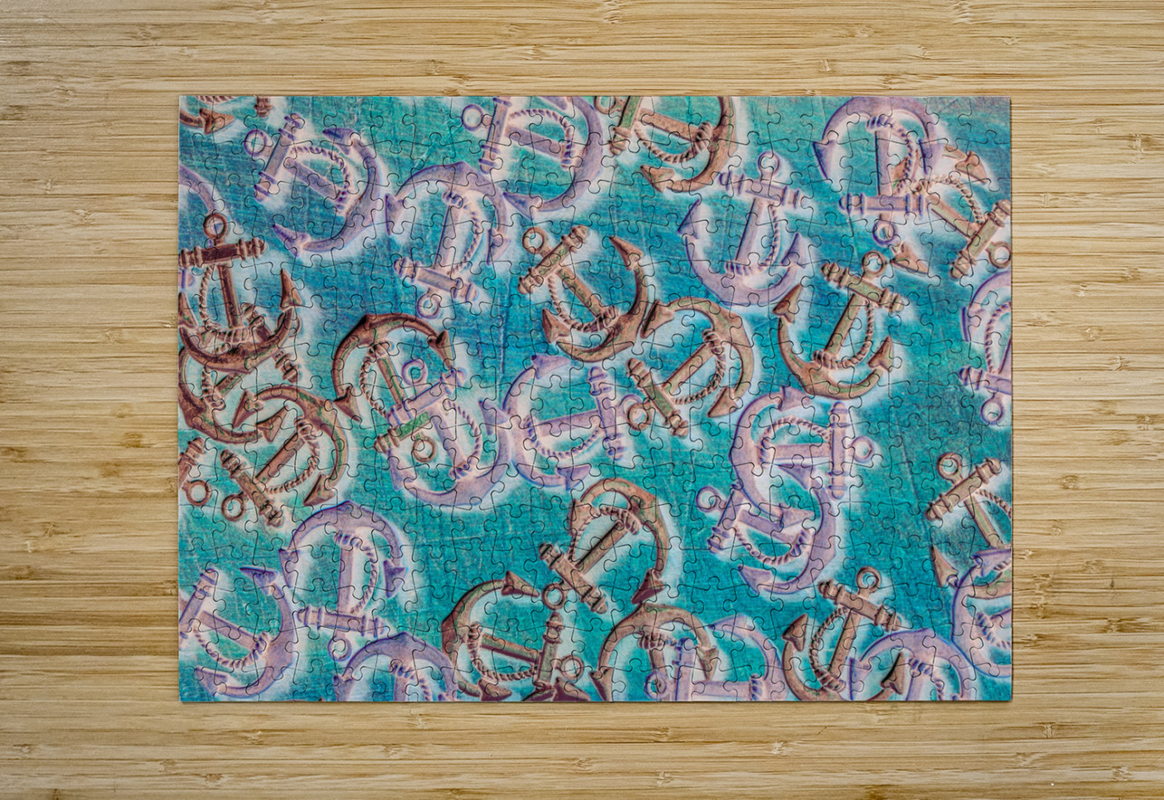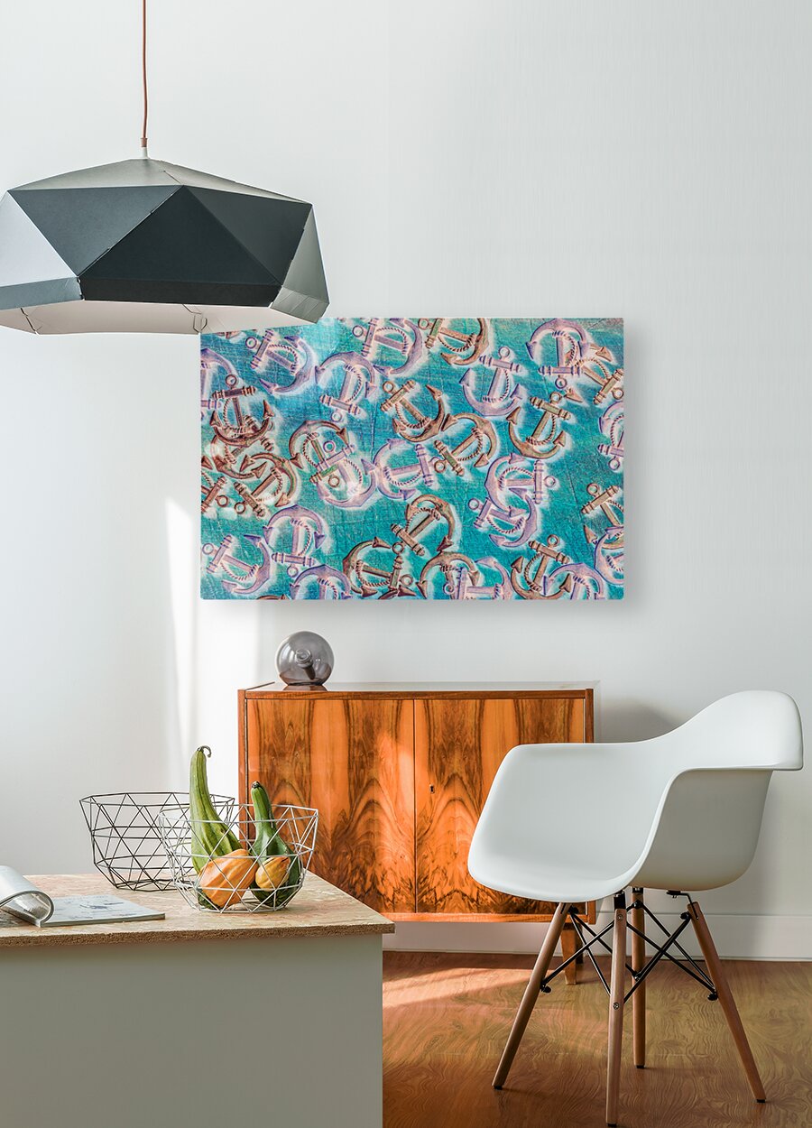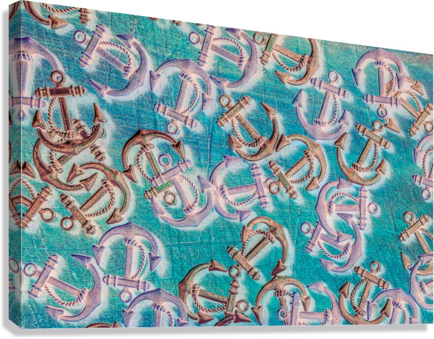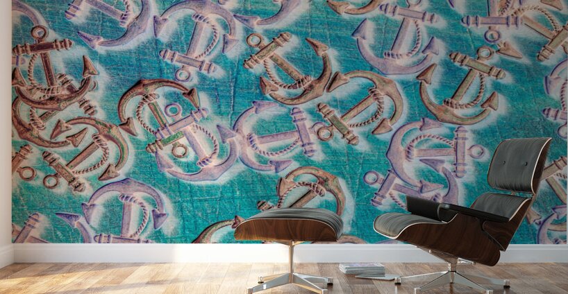 Creative abstract aquatics with beach anchors in blue and purple pop art. Swash buckled