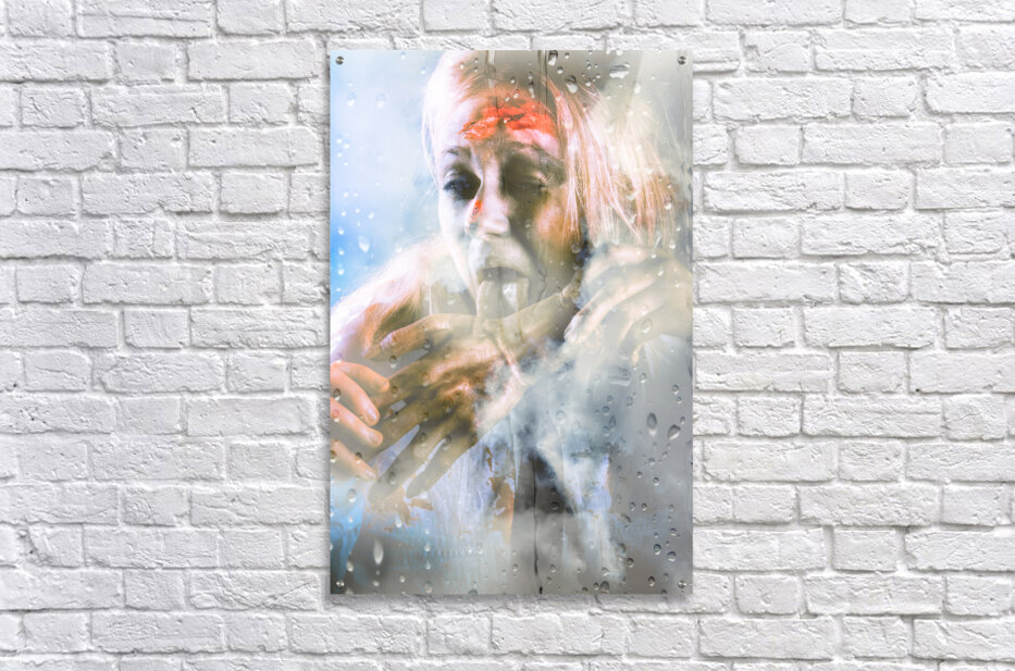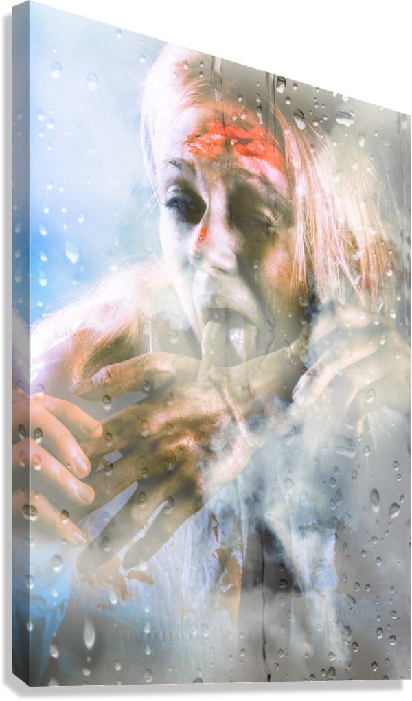 ABOUT THIS ARTWORK: SCARY HORROR ZOMBIE LICKING HUMAN HAND AT WINDOW