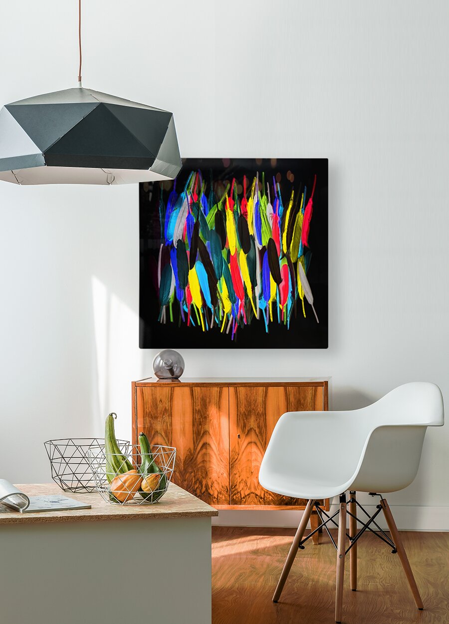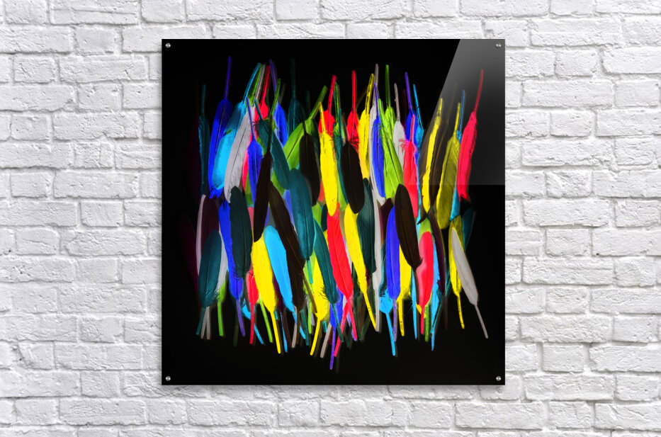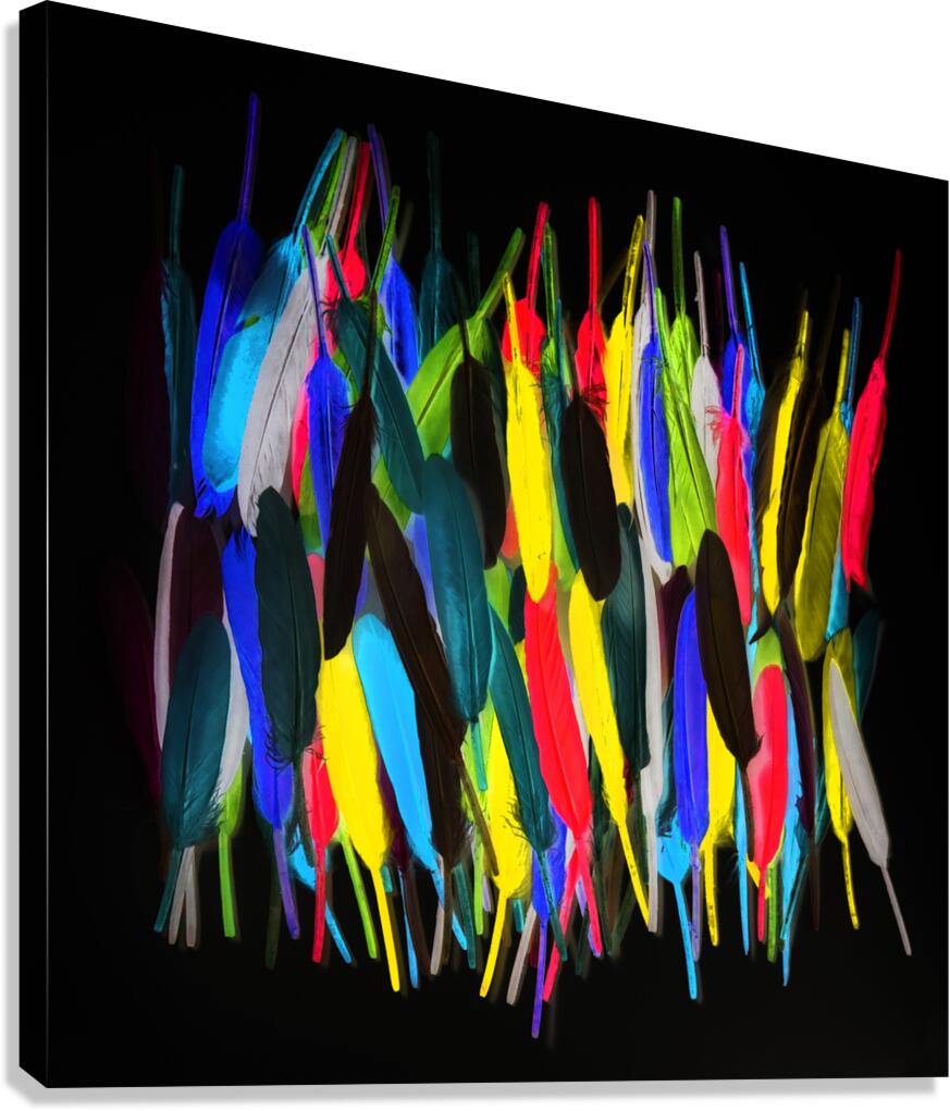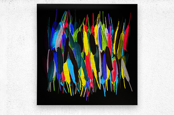 Fine art design on a mishmash of colorful feathers in creatively stroked out abstract. Painterly plumes