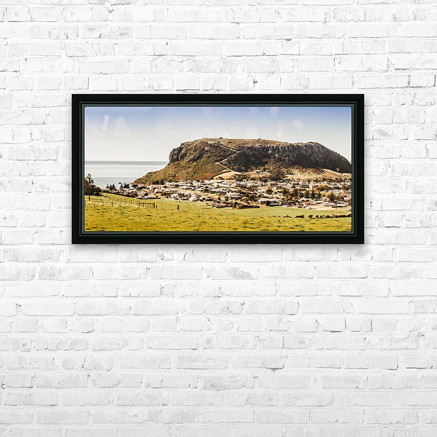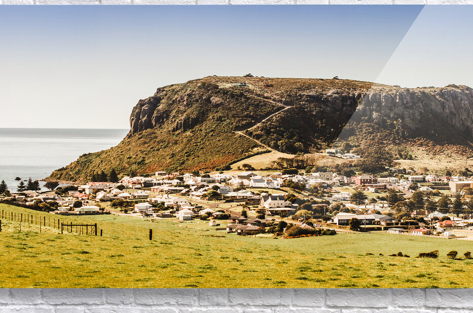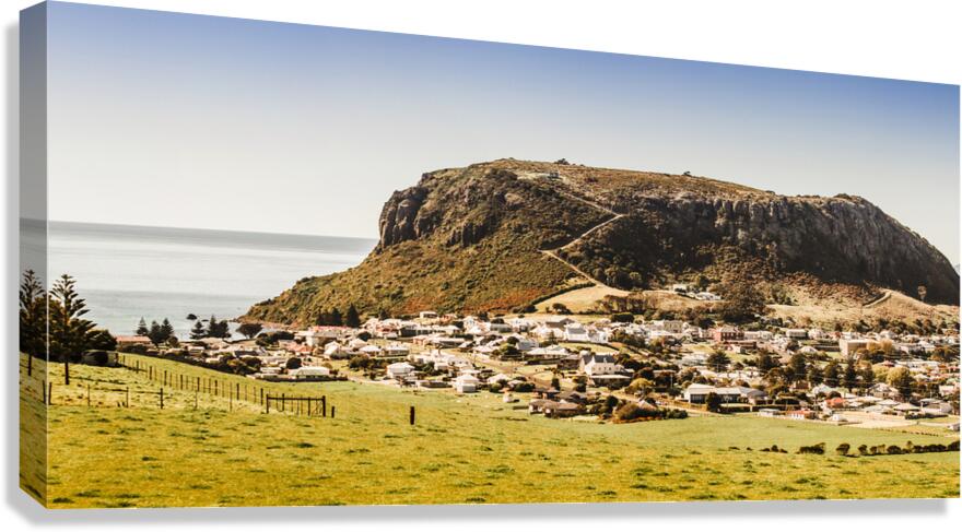 Harbour town landscape on a serene view on the rugged Tasmania tourism attraction The Nut in Stanley Australia