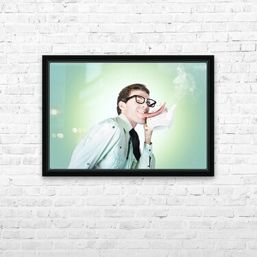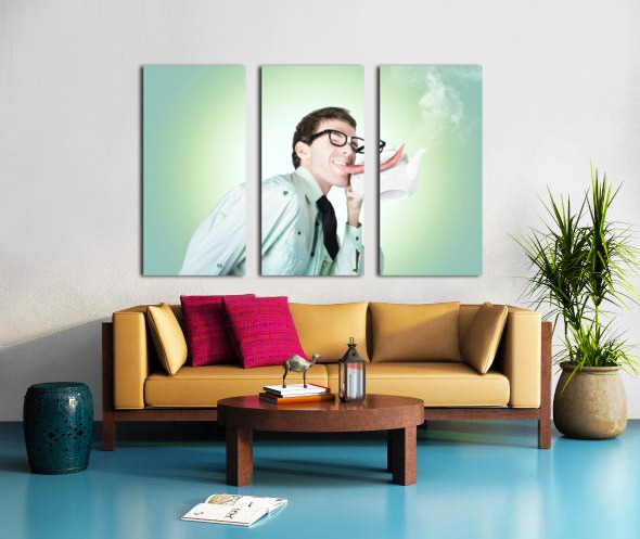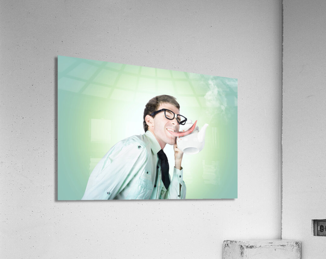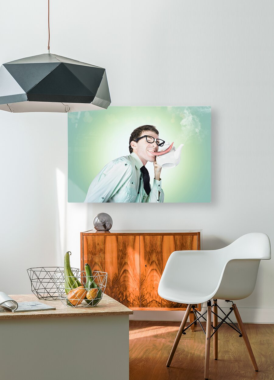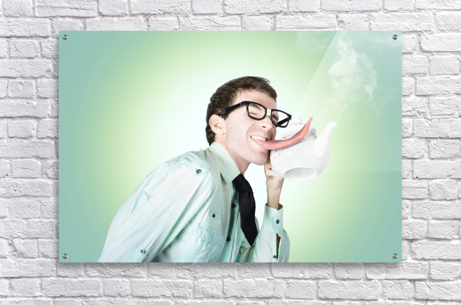 Sensual dorky man preparing for coffee love Picture Frame Printing