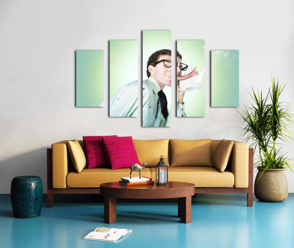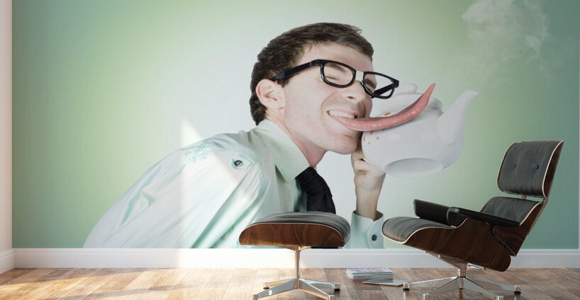 Get this artwork "Sensual dorky man preparing for coffee love" in a framed print.