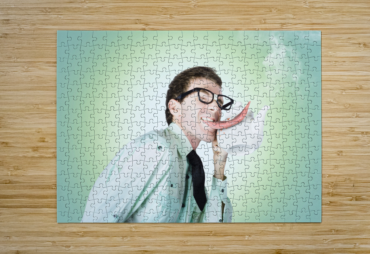 Sensual dorky man preparing for coffee love Jorgo Puzzle printing