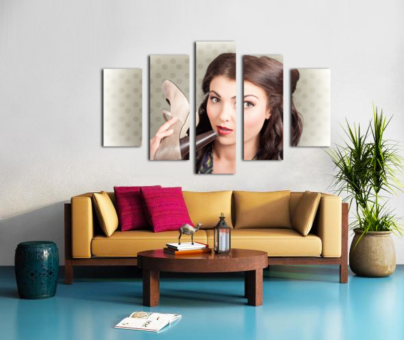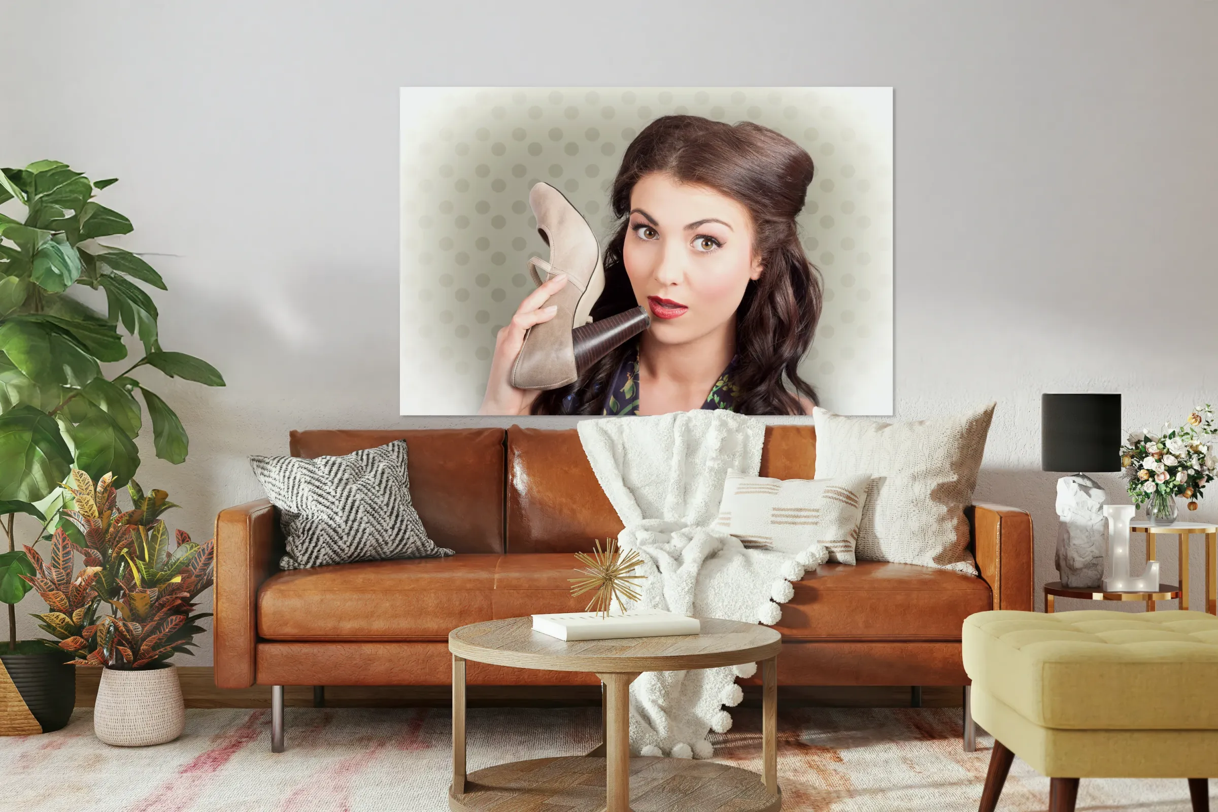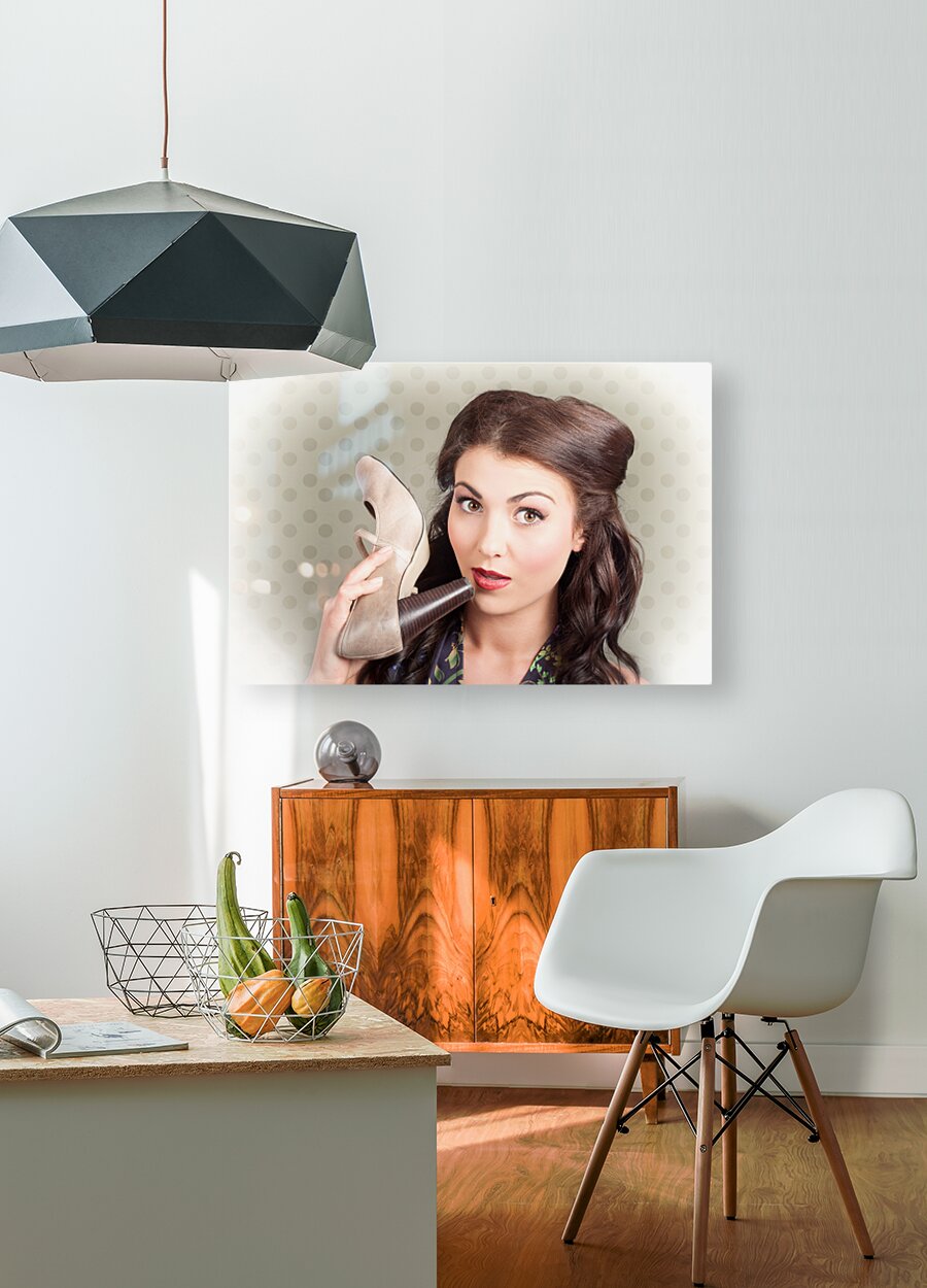 Hi fashion. Retro woman with high heel shoes Picture Frame Printing