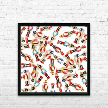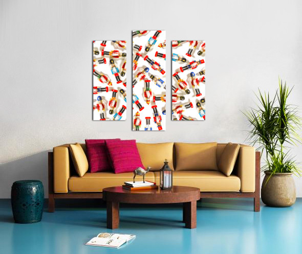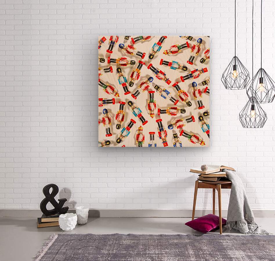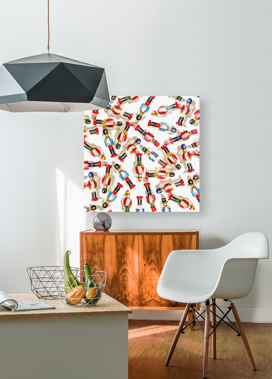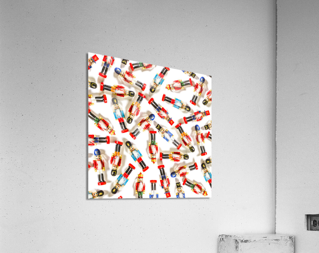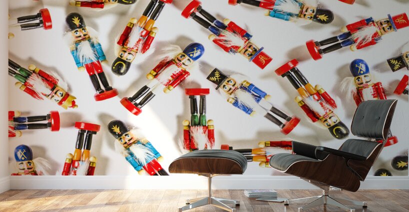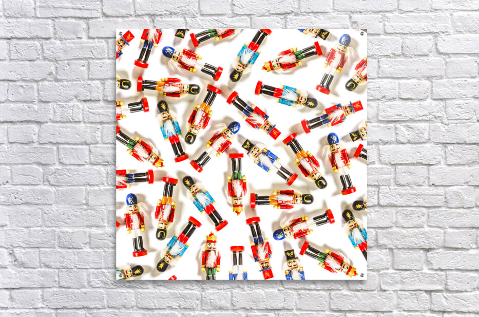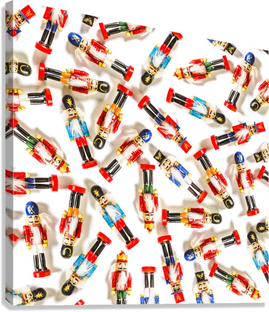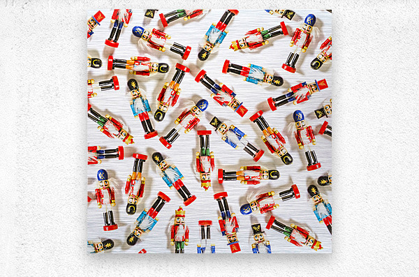 Creative background composition on a mix of toy soldier dolls from Christmas traditions. Xmas Guard
