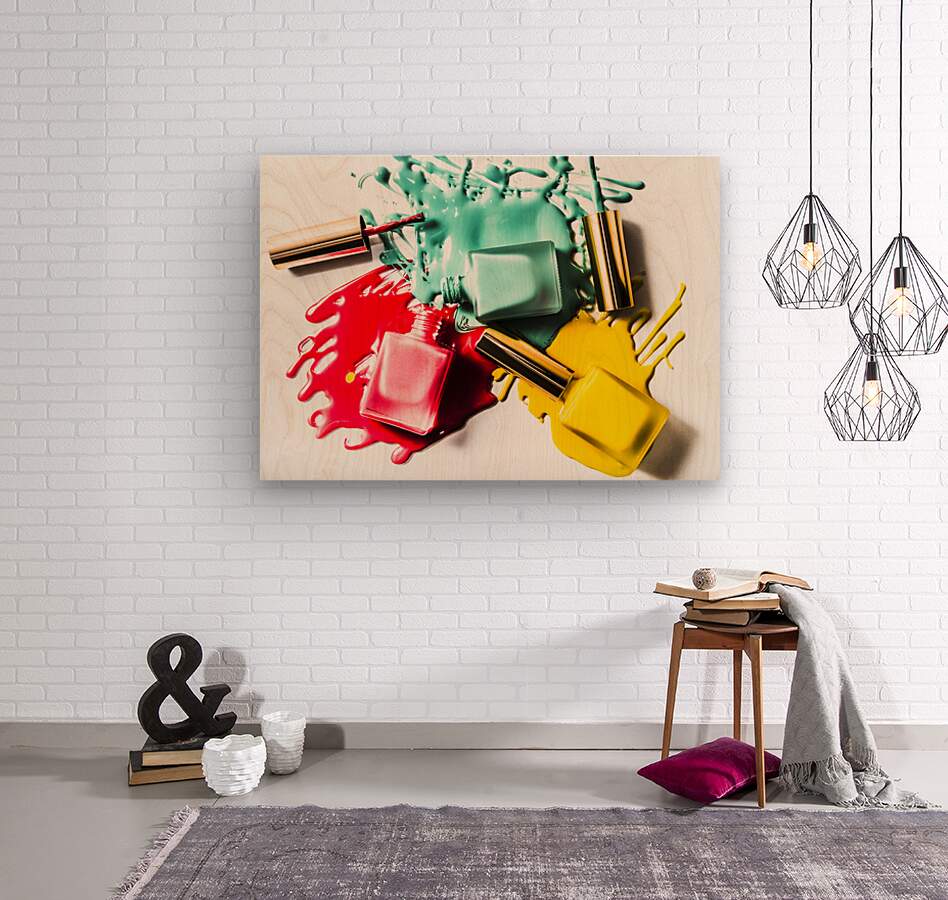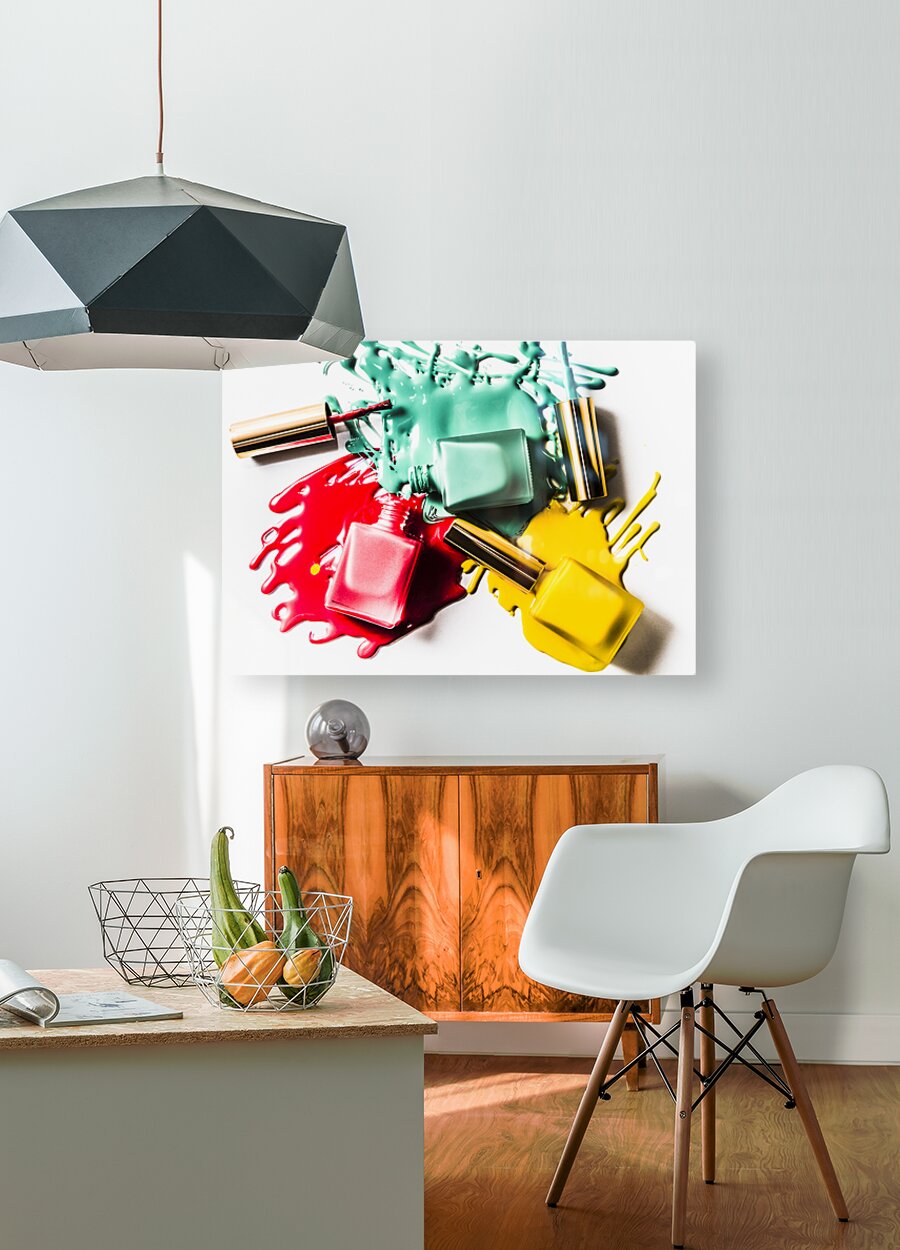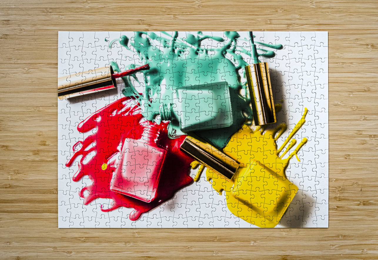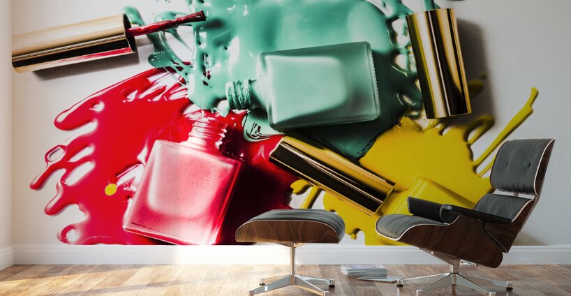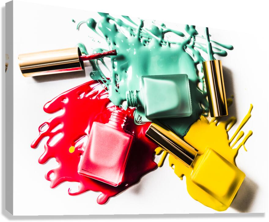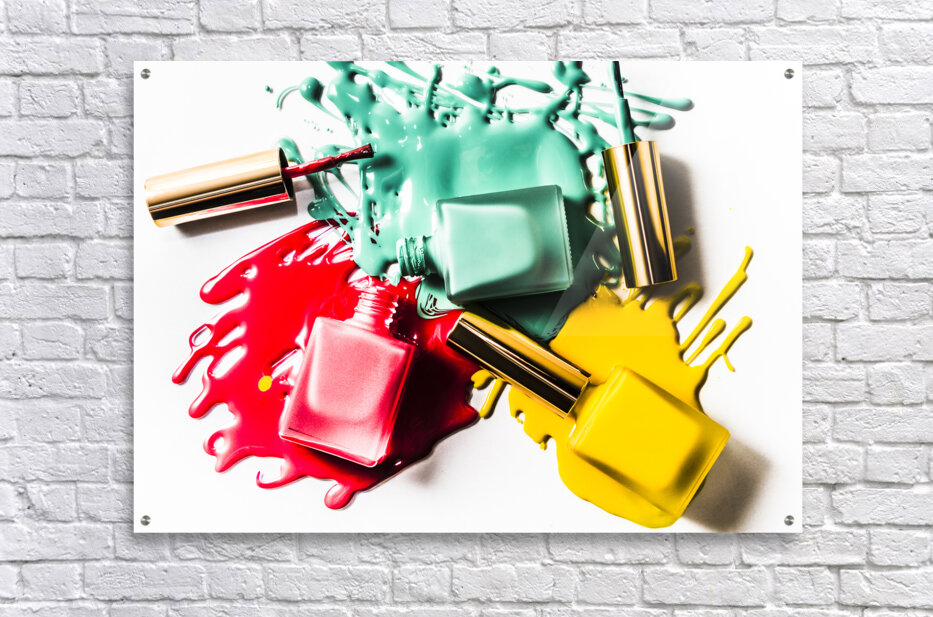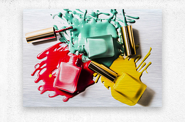 Creative beautification in a fine art still of color runs from varnish spills. Beauty therapy