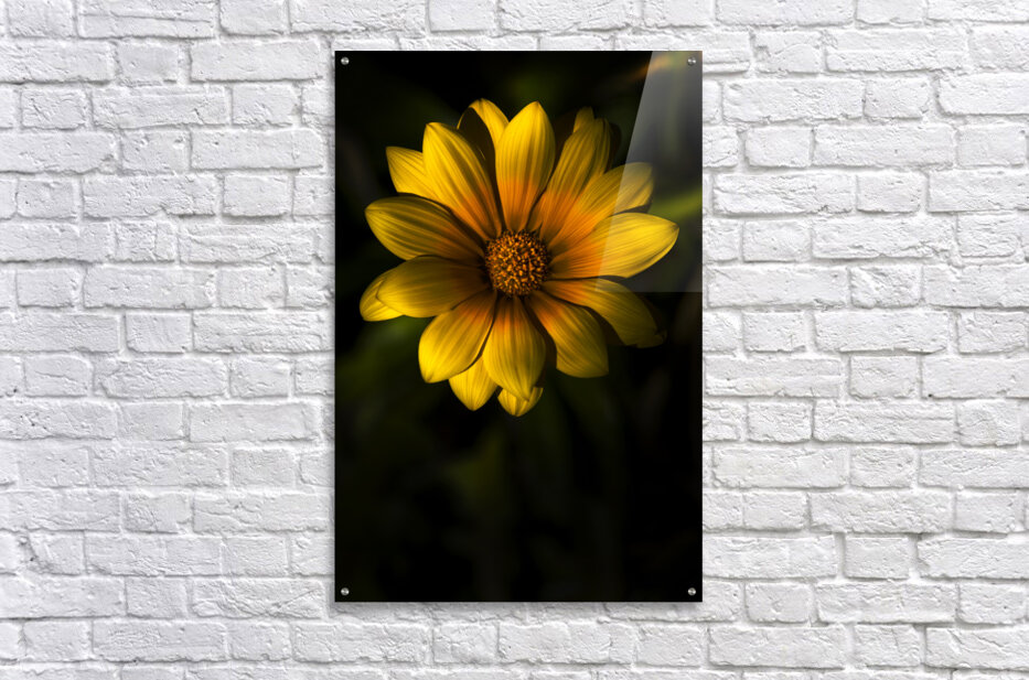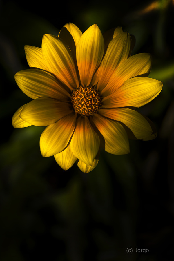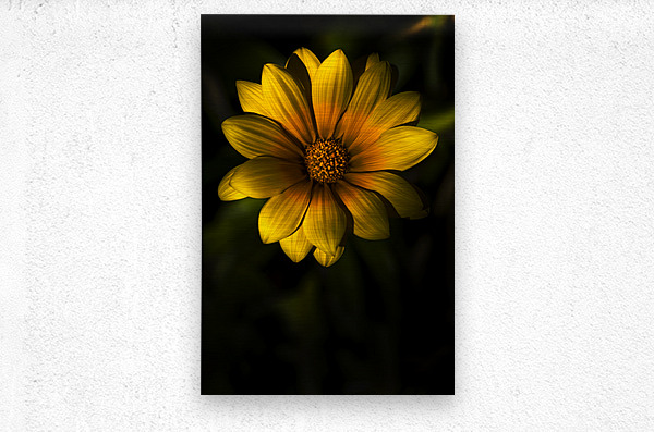 Nature In Bloom With A Dark South African Gazania Flower With Yellow Petals And An Orange Bud Against A Black Background In A Beginning Of Spring Conc...[+]