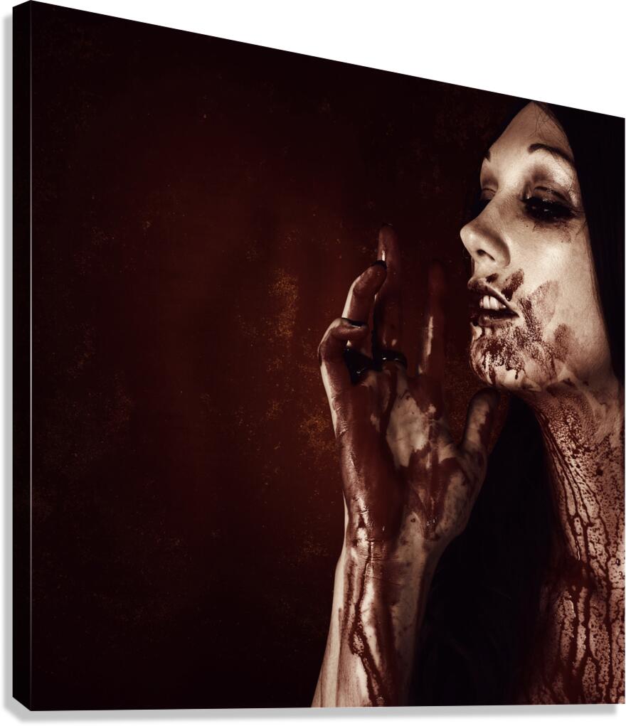 Get this artwork "Vampire woman touching tasting and smelling blood" in a framed print.