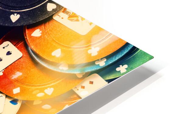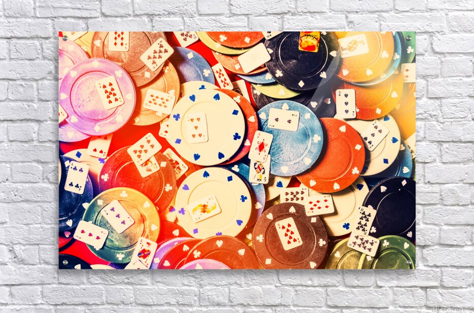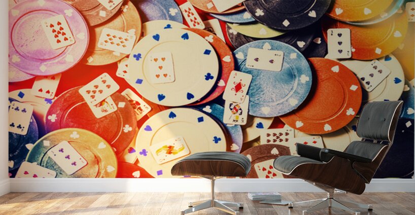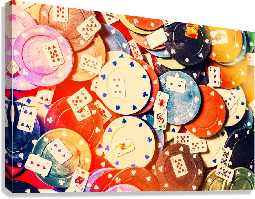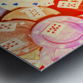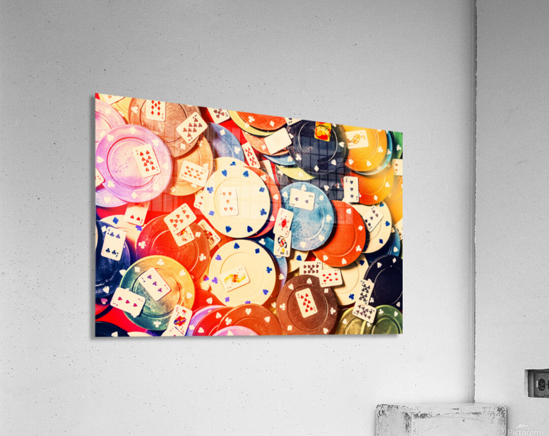 Nightlife design on a gaming table layout of card competition with flared lights and vegas chips in abstract. Winning streak
