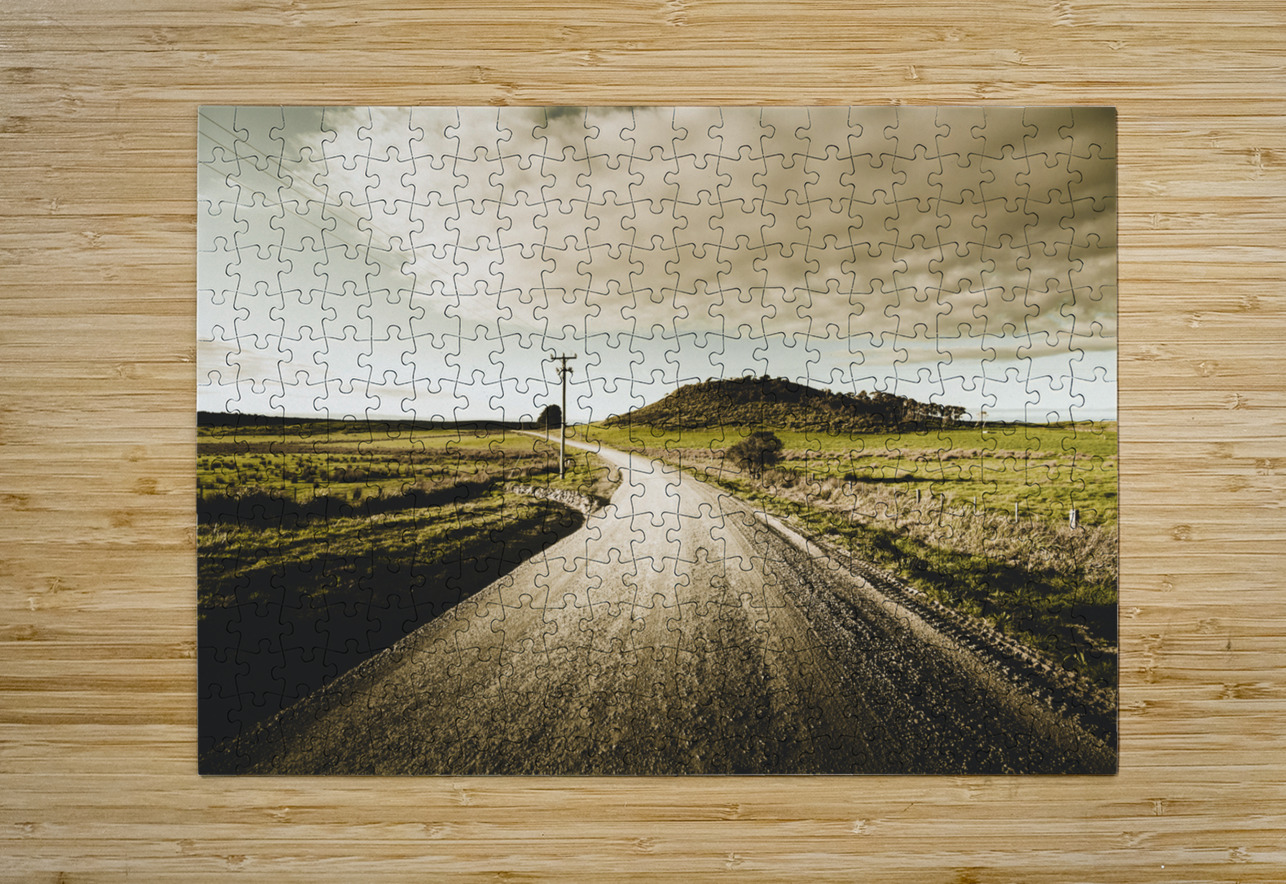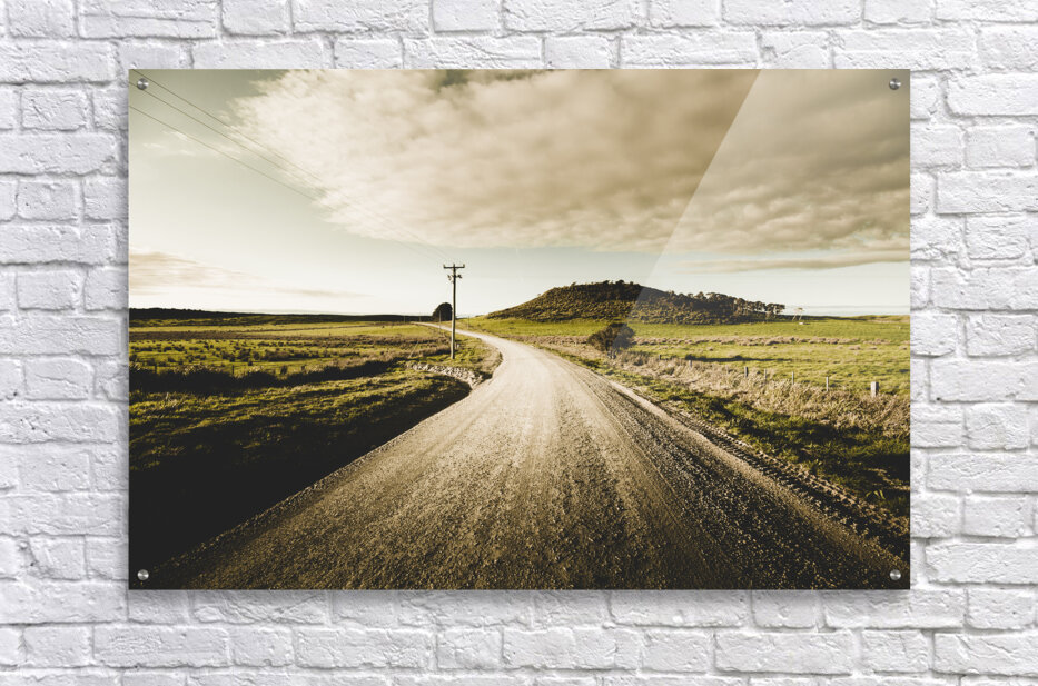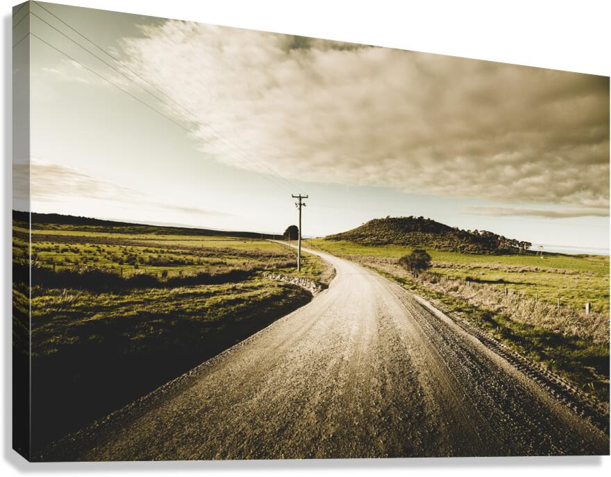 Outback country dirt roads trailing through northern Tasmania countryside. Cape Porland Rd Rushy Lagoon Australia