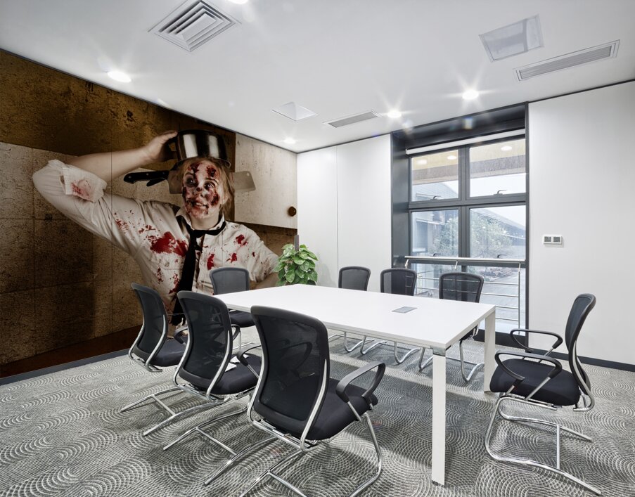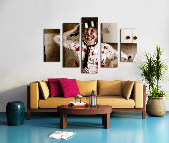 ABOUT THIS ARTWORK: FUNNY ZOMBIE COOK DANCING IN HORROR KITCHEN