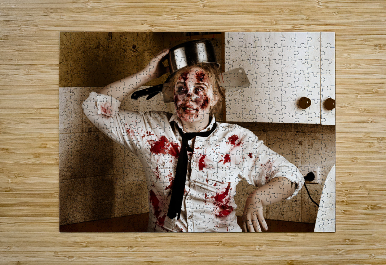 Funny zombie cook dancing in horror kitchen Jorgo Puzzle printing