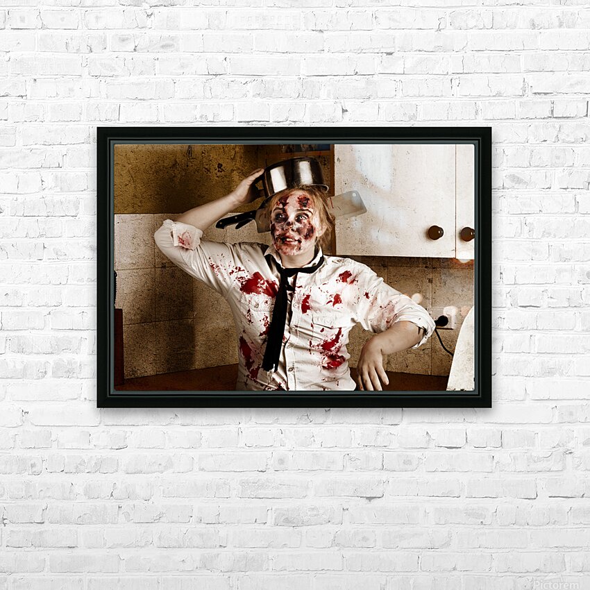 Funny zombie cook dancing in horror kitchen Picture Frame Printing