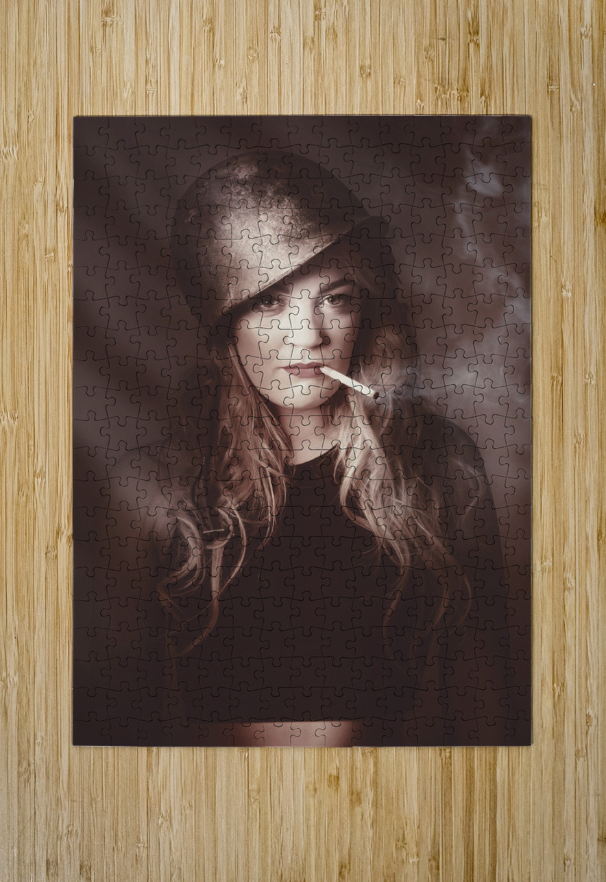 Beautiful blond army pinup girl smoking cigarette Jorgo Puzzle printing