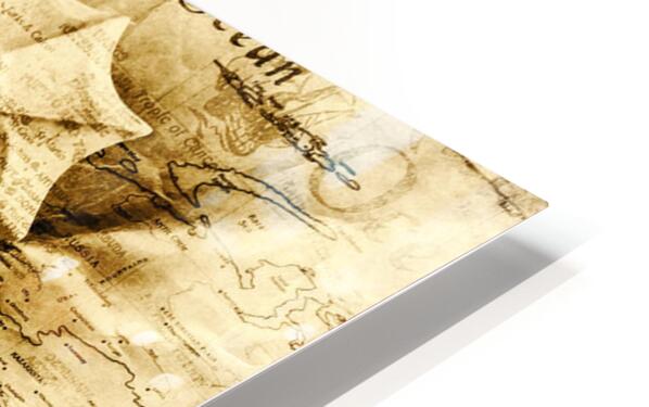 Vintage marine artwork on a manuscript of maritime mapping in old world ornamental decoration. Seahorse Seas