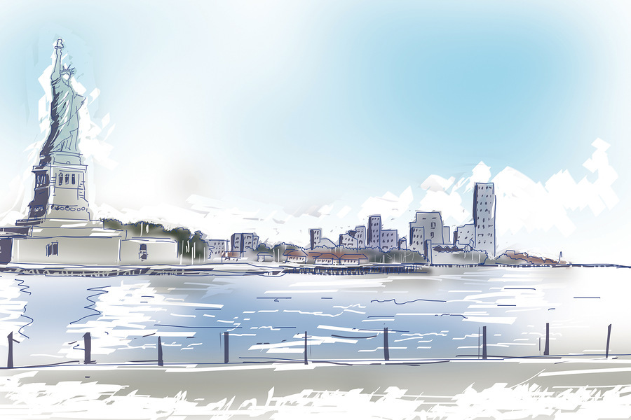 STATUE OF LIBERTY AND NEW YORK CITY ILLUSTRATION