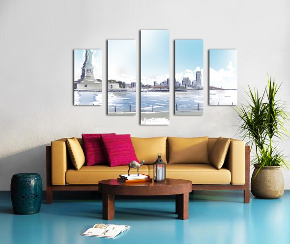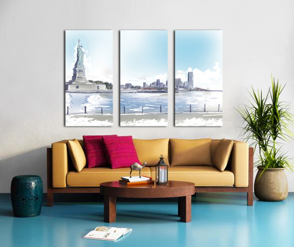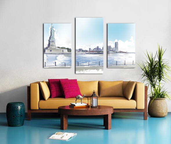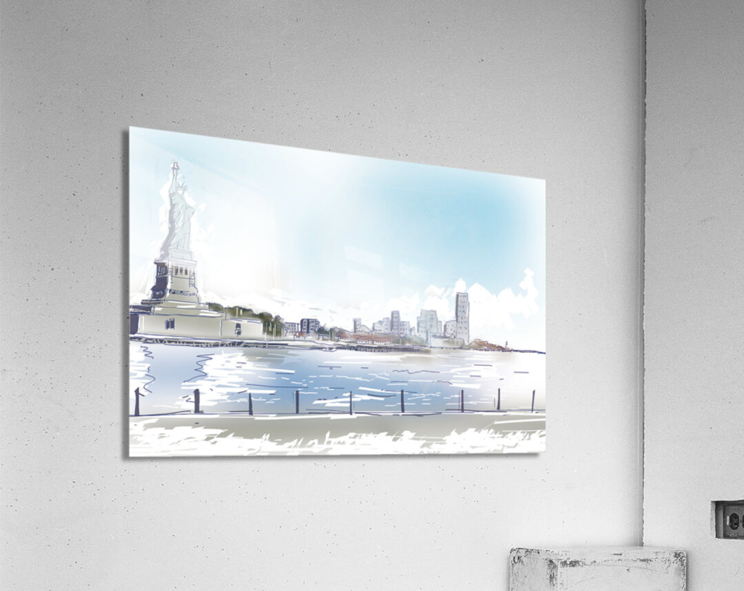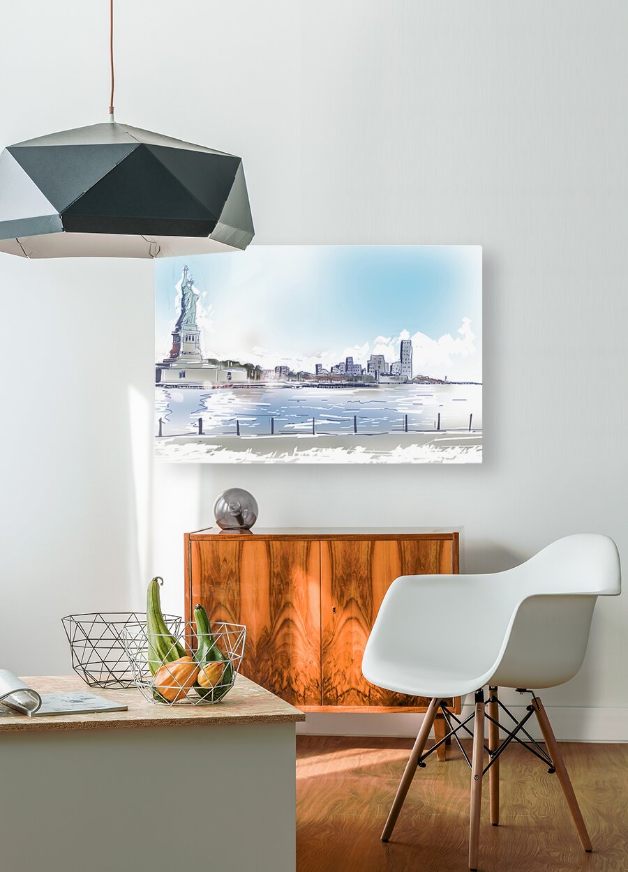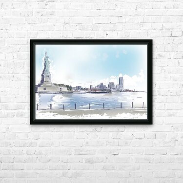 Statue of Liberty and New York City Illustration  Picture Frame Printing