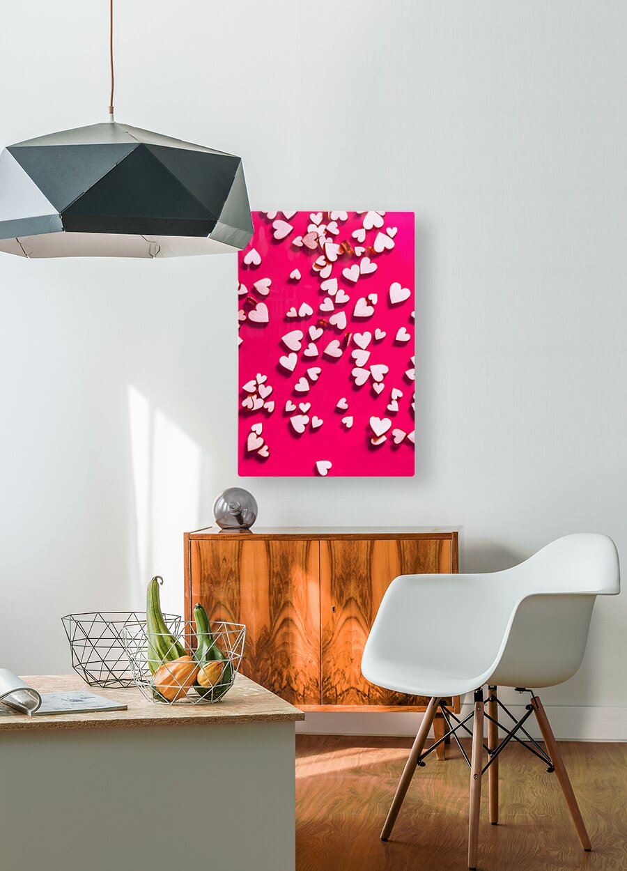Still life abstract of confetti connections with ornamental hearts in symbolic sentiment. Hearted