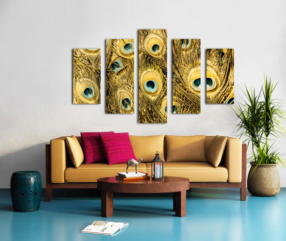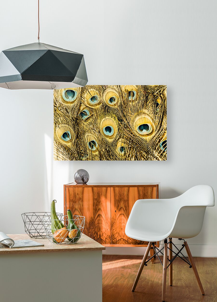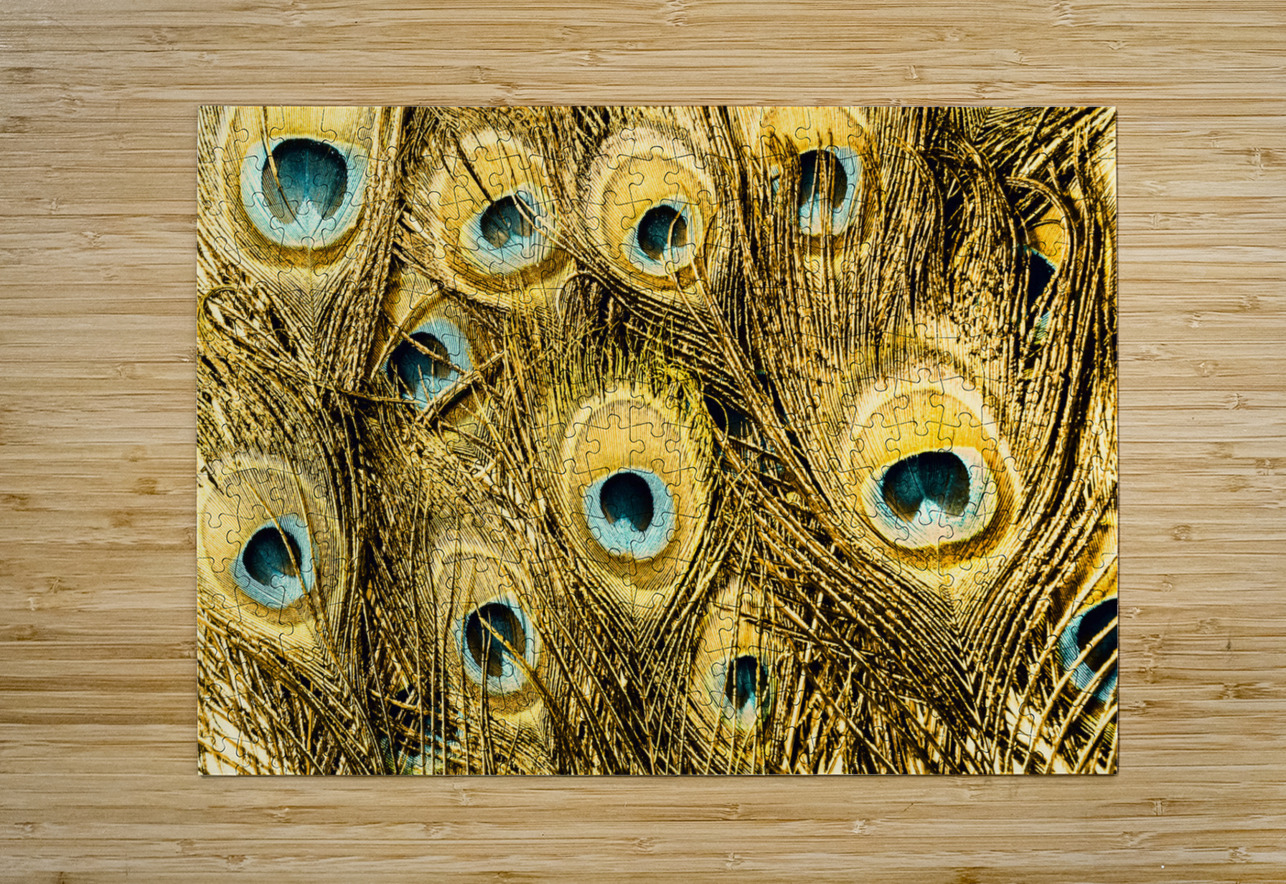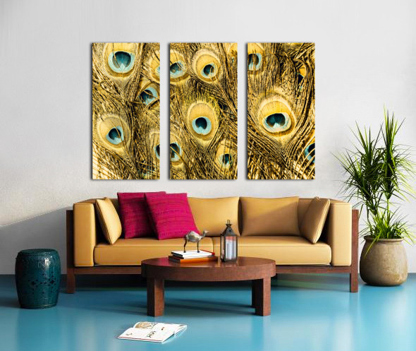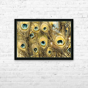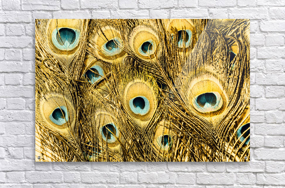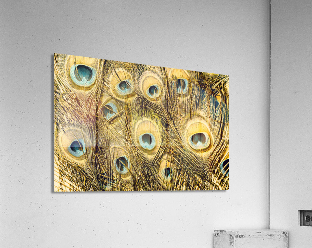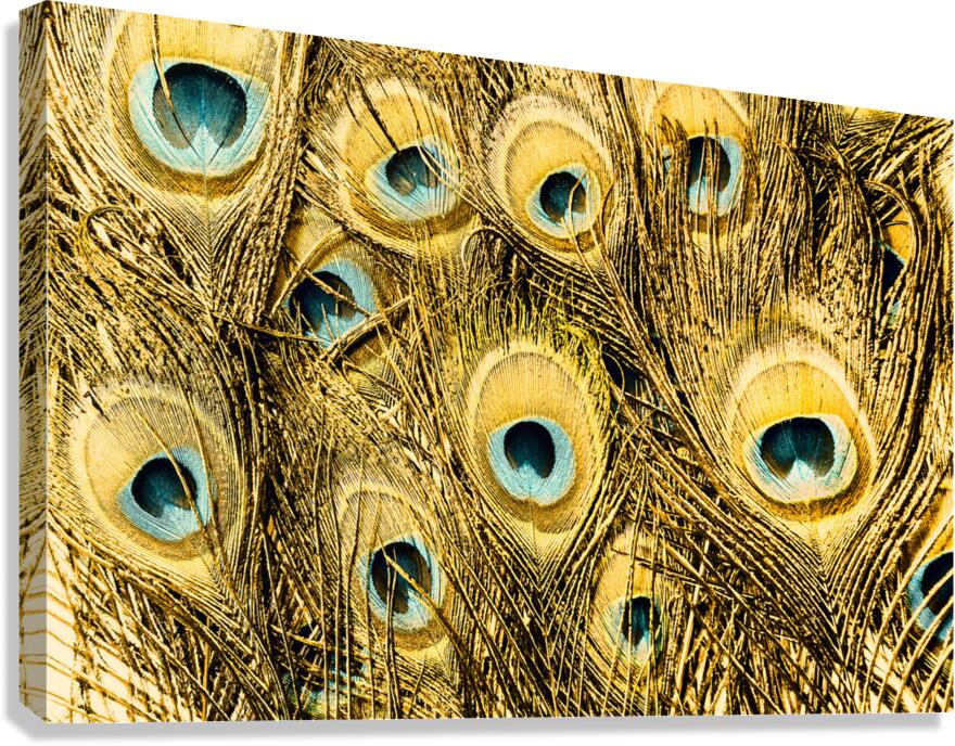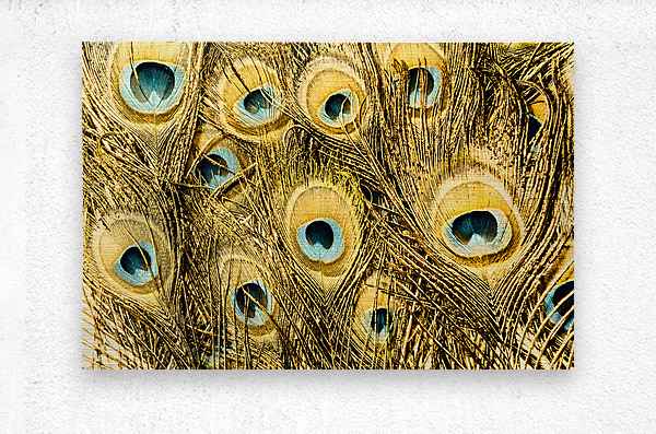 Golden swatch of decorative delicacy with a majestic play in peacock feathering. Spot colors