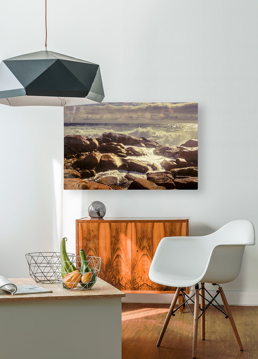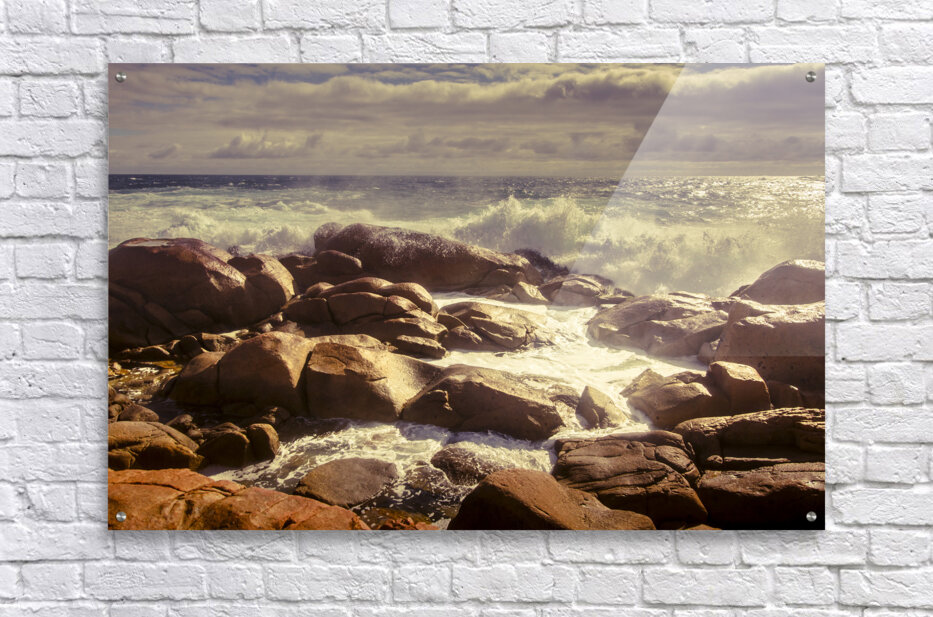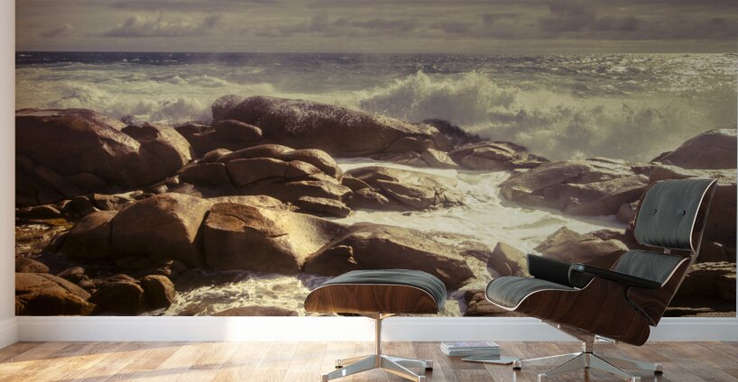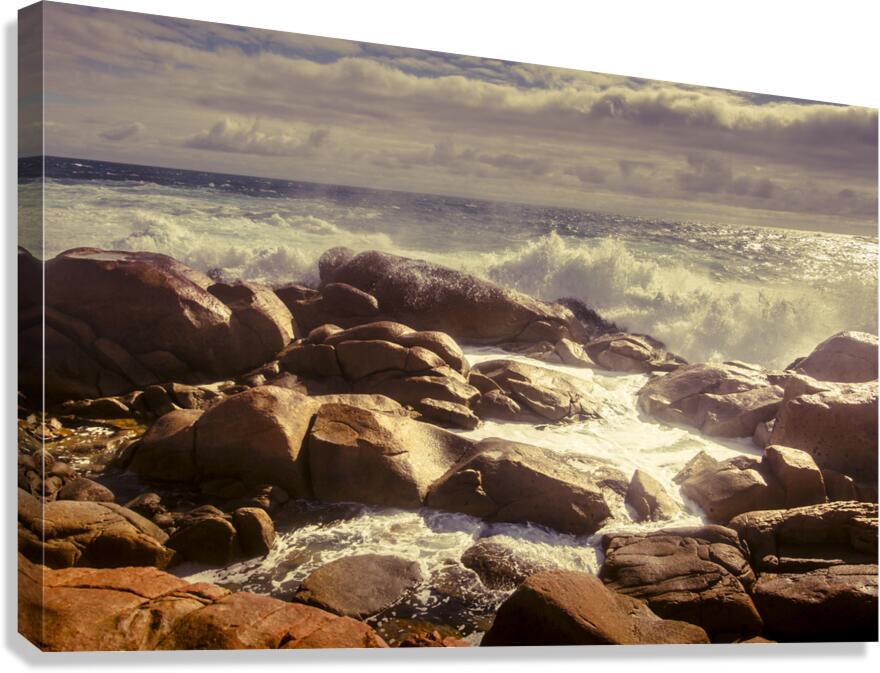 Harmonious afternoon ocean landscape on dreamy waves and tranquil rocks. Taken Granville Harbour West Tasmania Australia