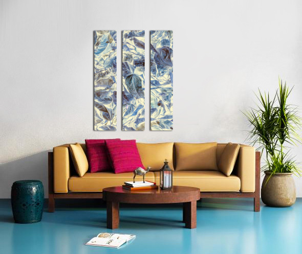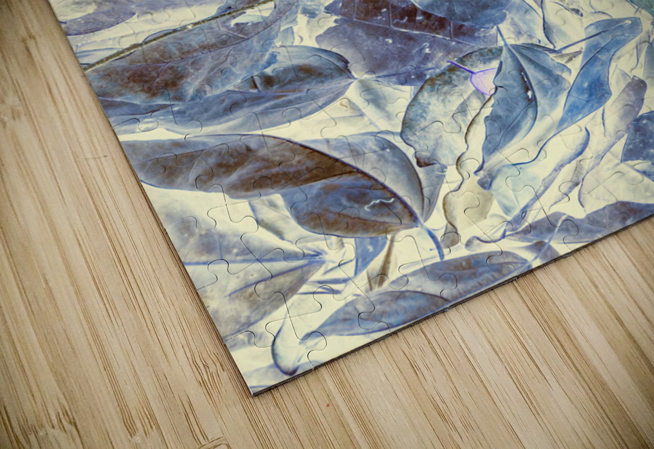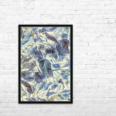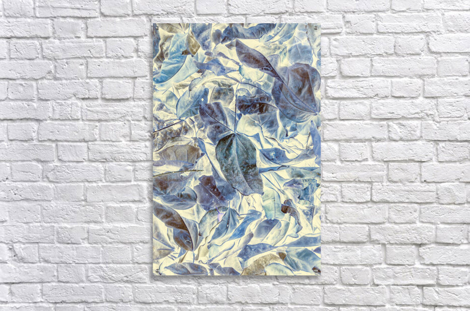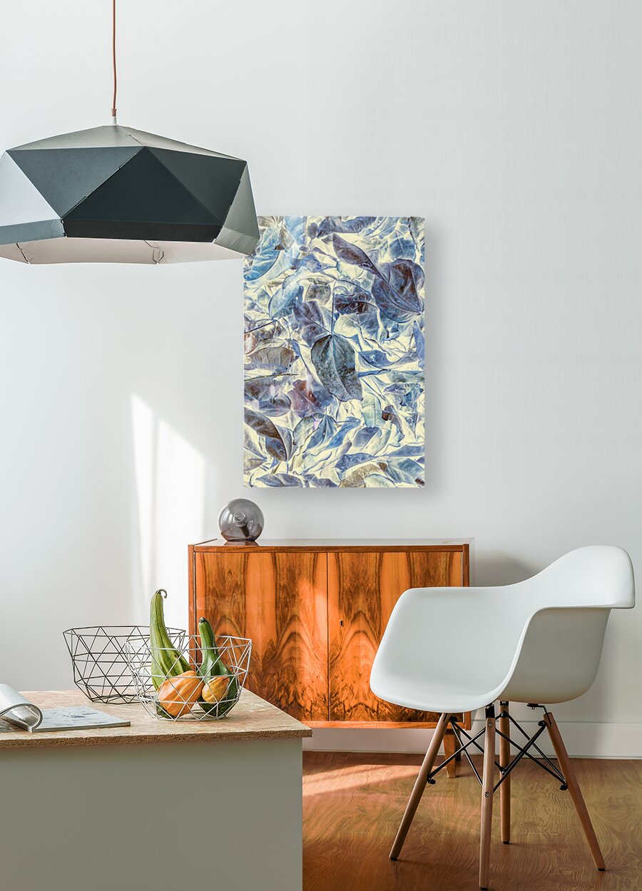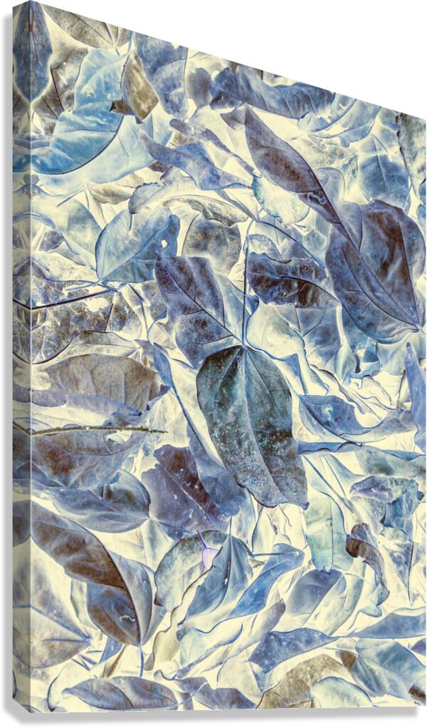 Abstract forestry art in inversive organics with fallen leaves in beautiful blue