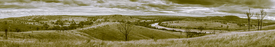 Calming wide country in a frontier of hills rivers and storm clouds gathering. Waynes Hill Lookout Mundubbera Queensland Australia