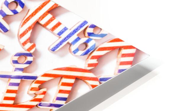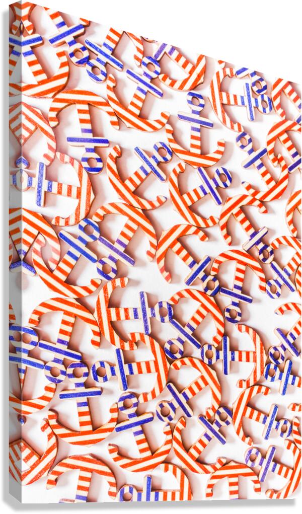 Red blue and white decoration of a USA design with wooden anchor background painted in patriot pride. American Seas