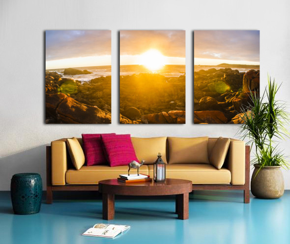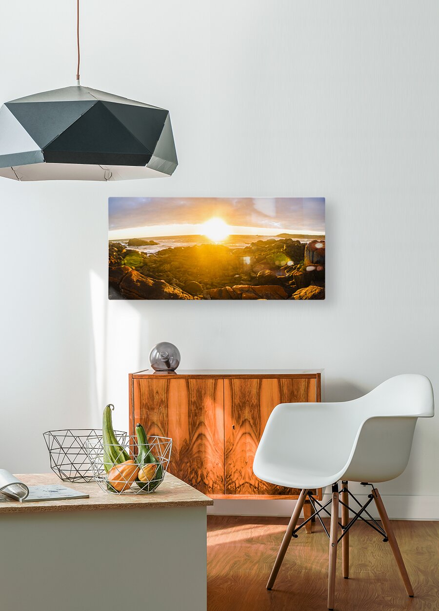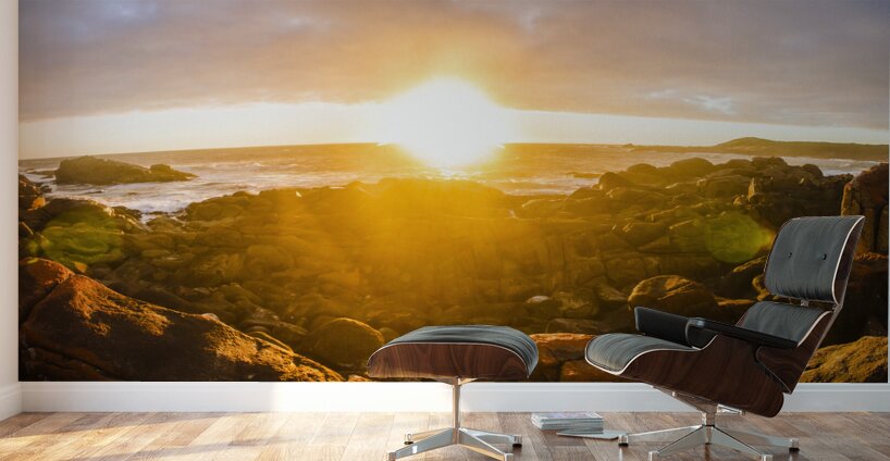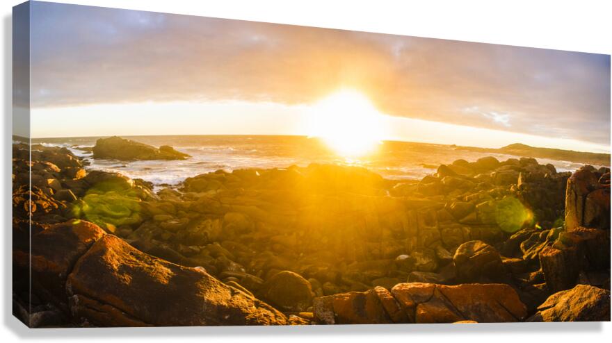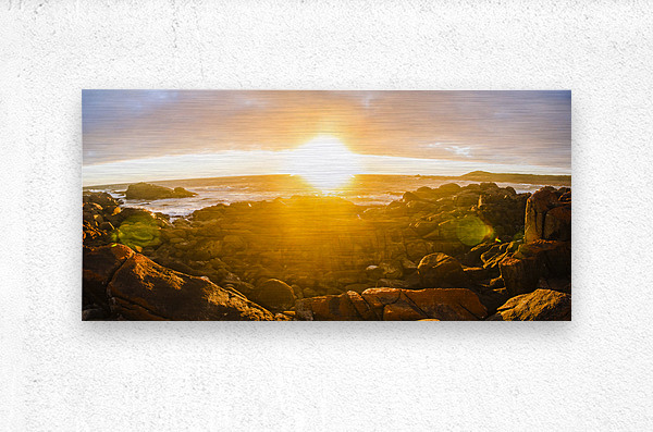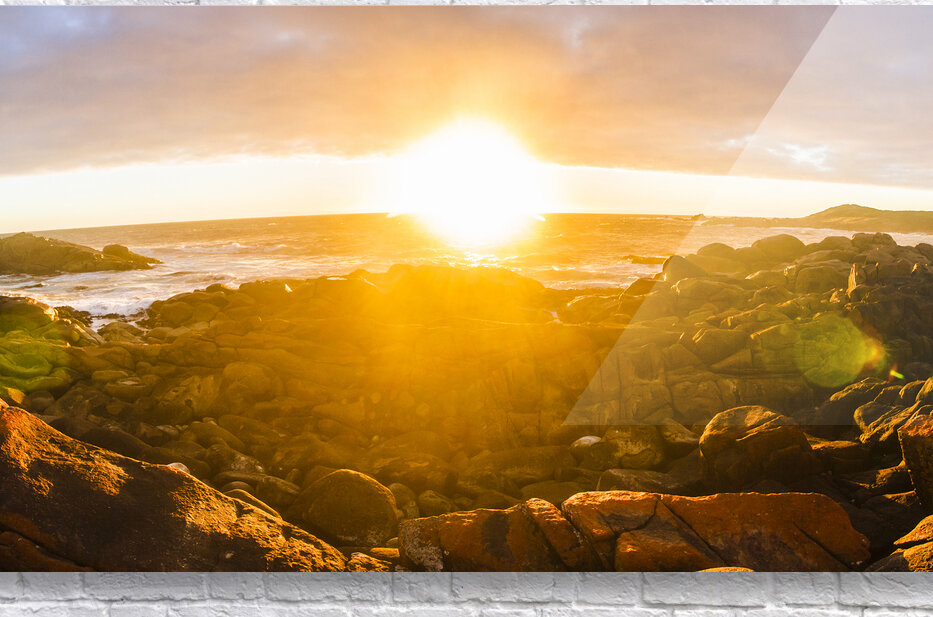 Fine landscape artwork on a bright beaming sun overexposing a beautiful beach location. Taken Granville Harbour Tasmania Australia