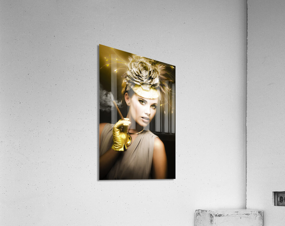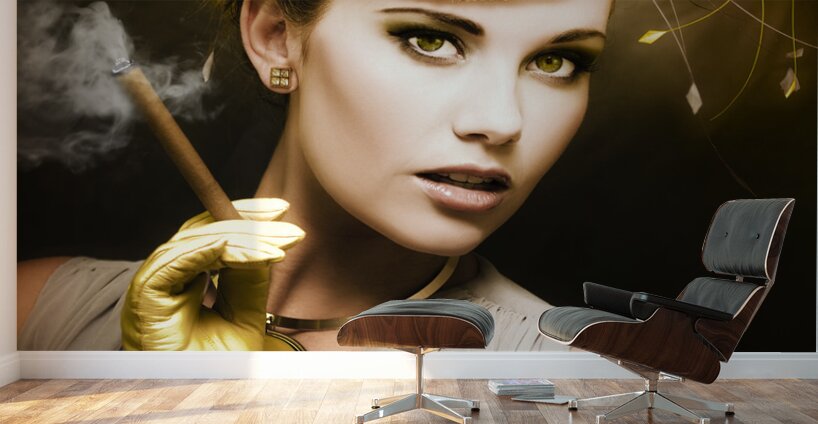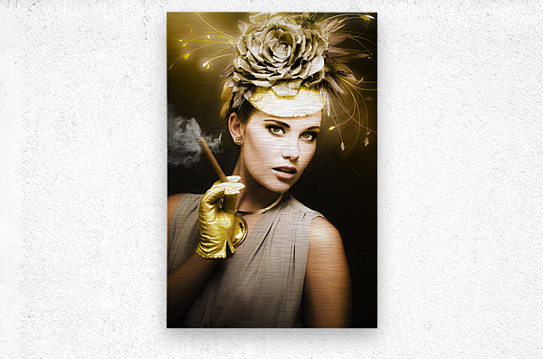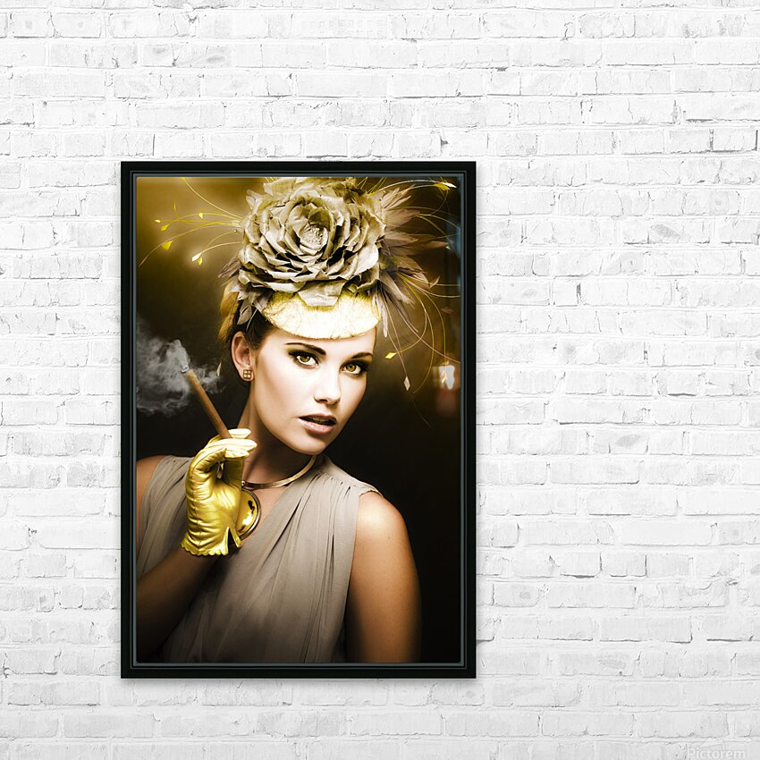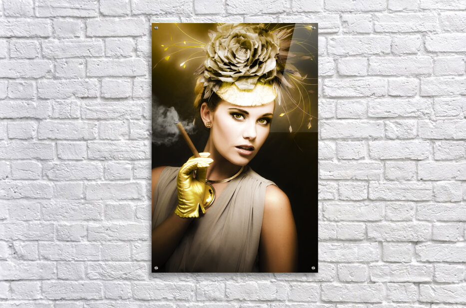 Classic Portrait Of Vintage Cinema With A Well Dress Female Actor Wearing Classy Retro Fashion While Holding A Smoking Cigar During A Onscreen Film Sh...[+]