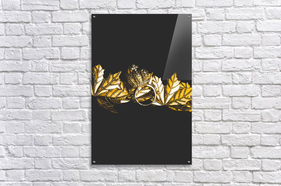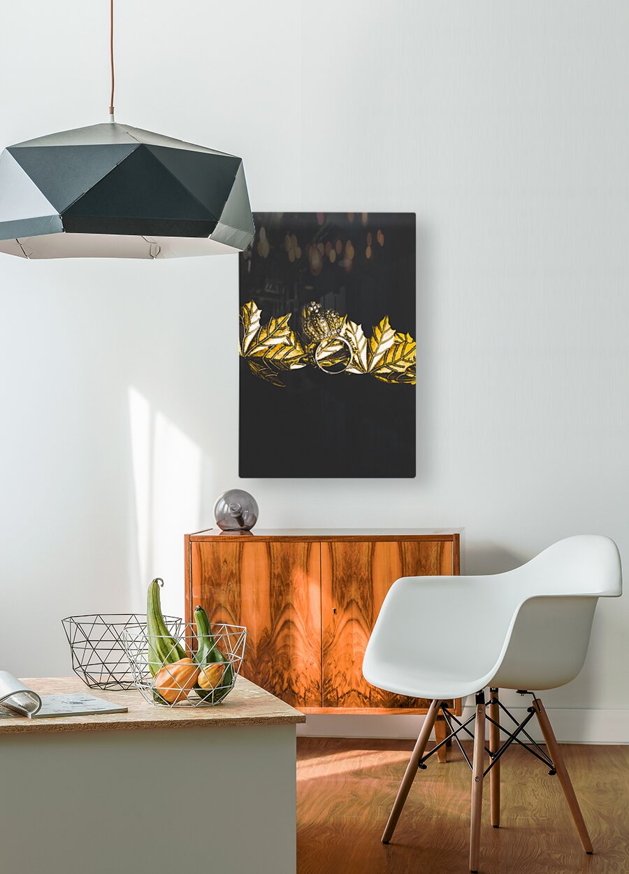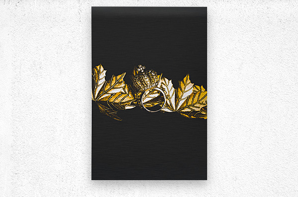 Minimalism in black and gold on a crown ring precious metal autumn scene. Royal crown jewels