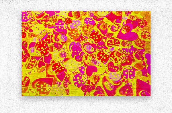 Vibrant retro art on a grouping of love bugs and heart sentiment. Summer bug