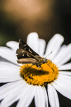 MOTH INSECTS ON A BRIGHT AND LUSH GARDEN FLOWER