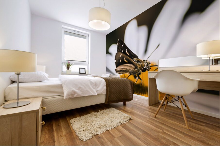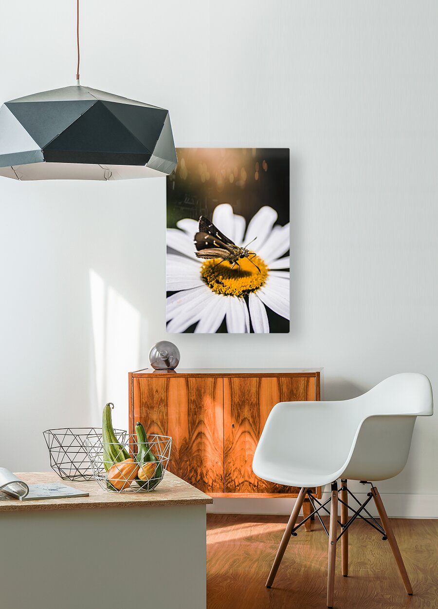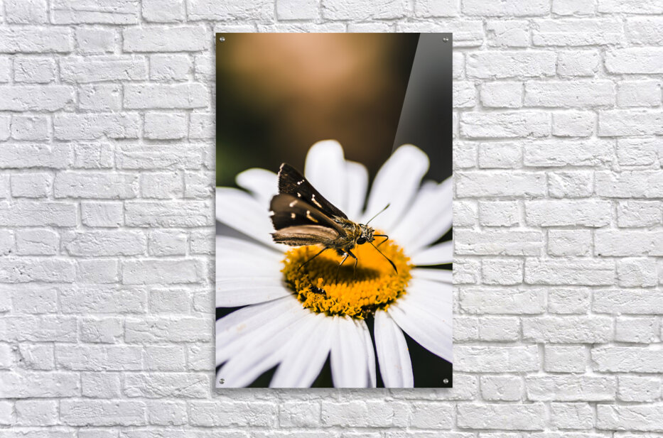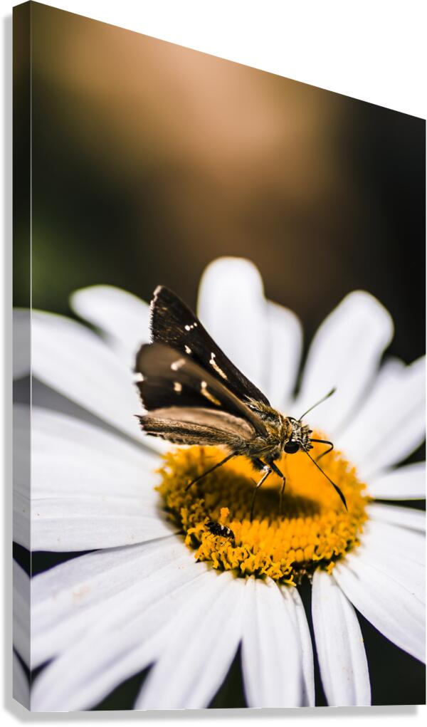ABOUT THIS ARTWORK: MOTH INSECTS ON A BRIGHT AND LUSH GARDEN FLOWER