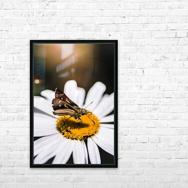 Moth insects on a bright and lush garden flower Frame print