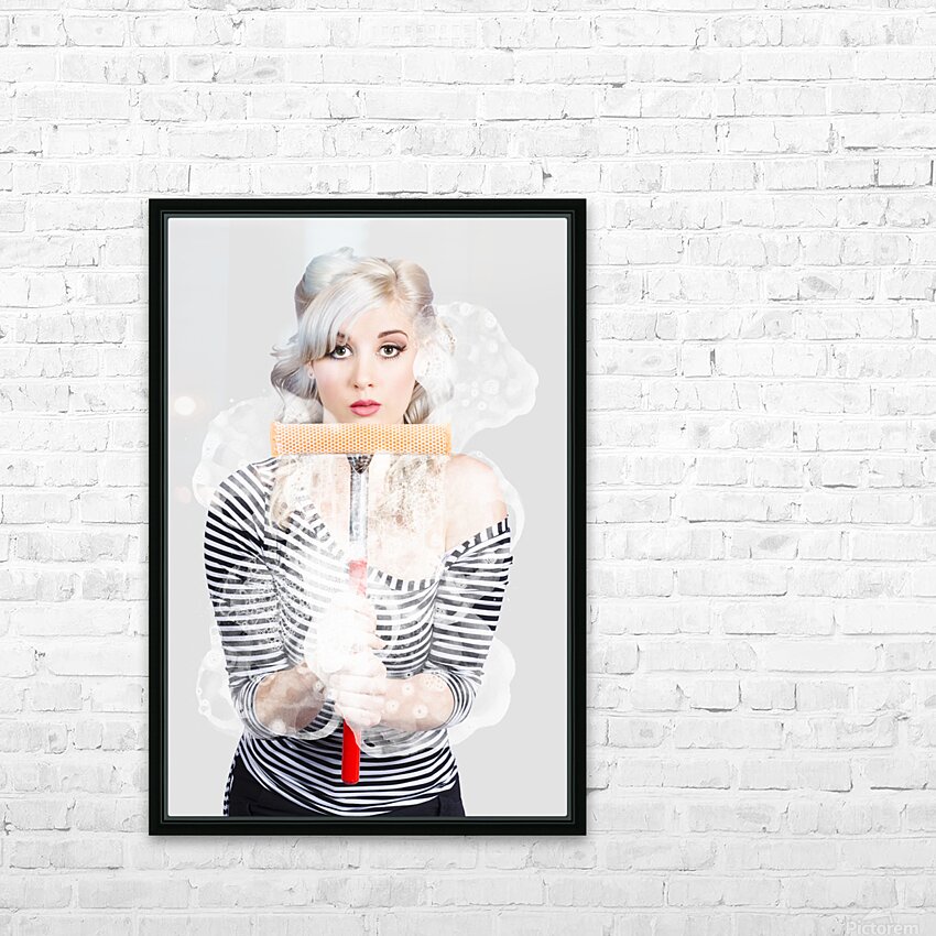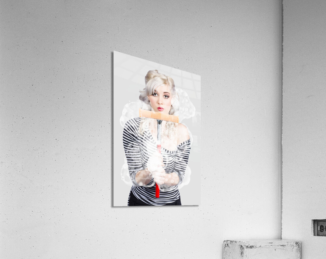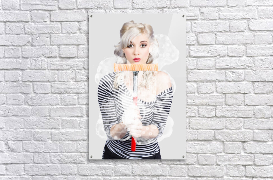 Get this artwork "Young woman washing empty copy space windows" in a framed print.