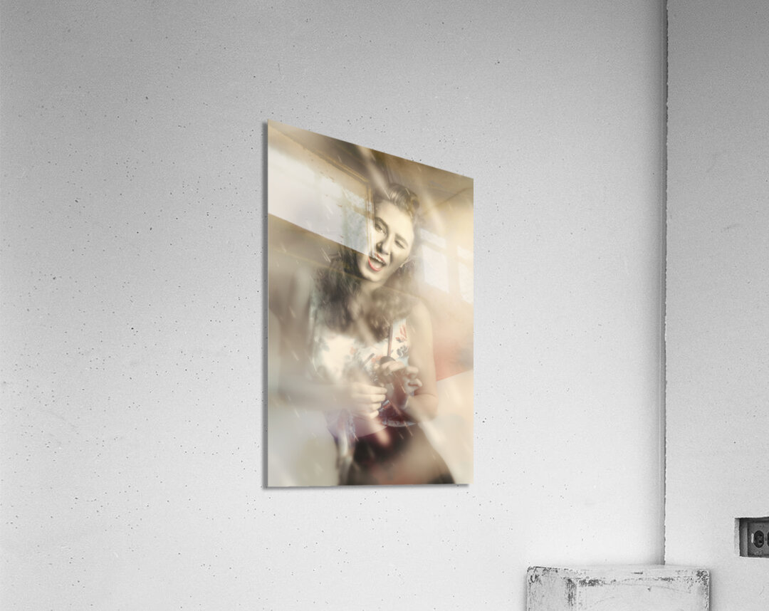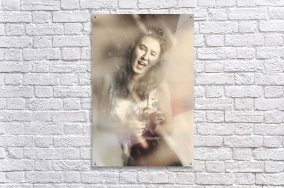 Get this artwork "Pin-up woman dancing in a shower of rain" in a framed print.