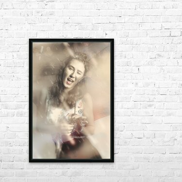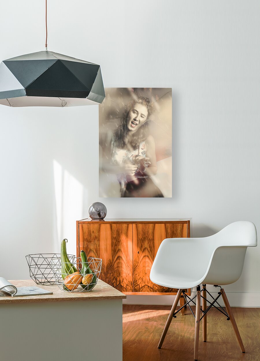 Pin-up woman dancing in a shower of rain Picture Frame Printing