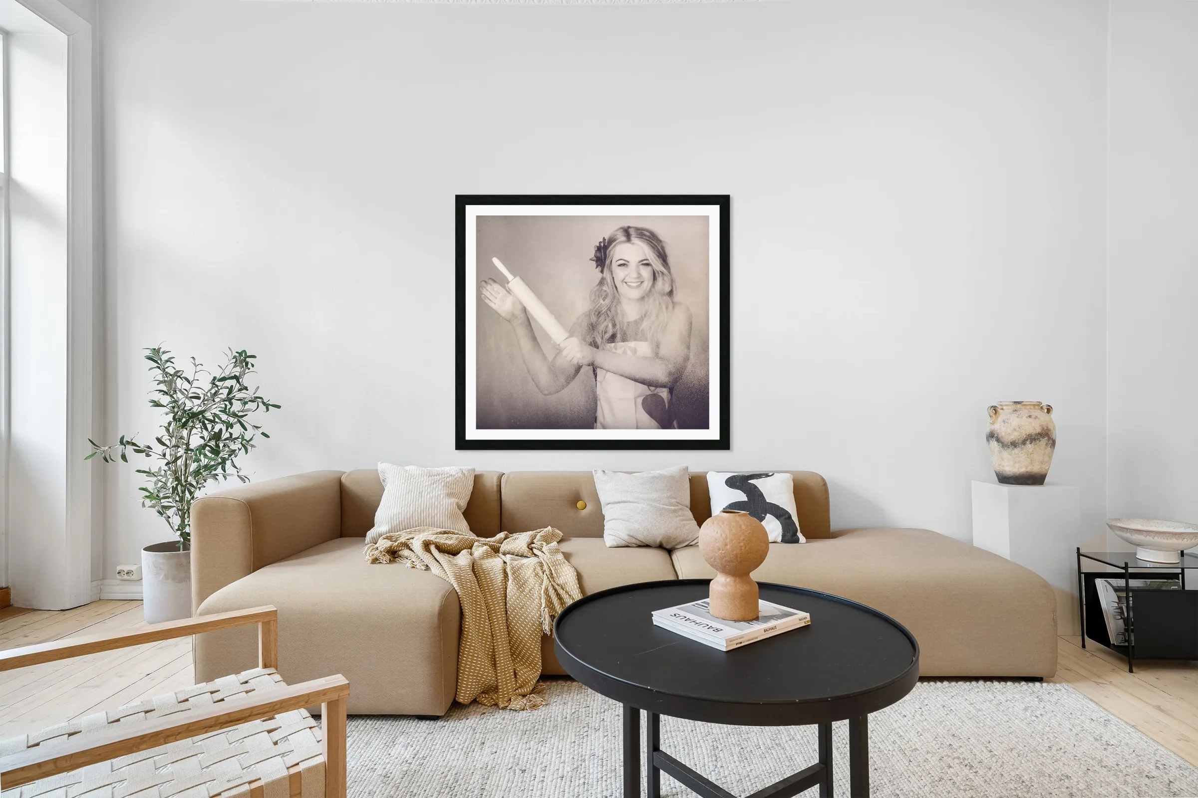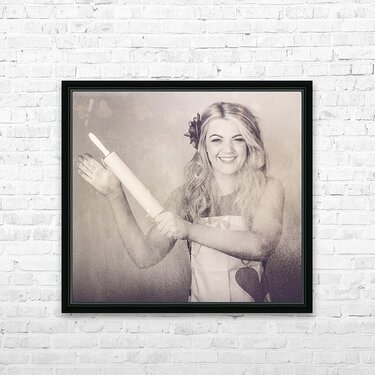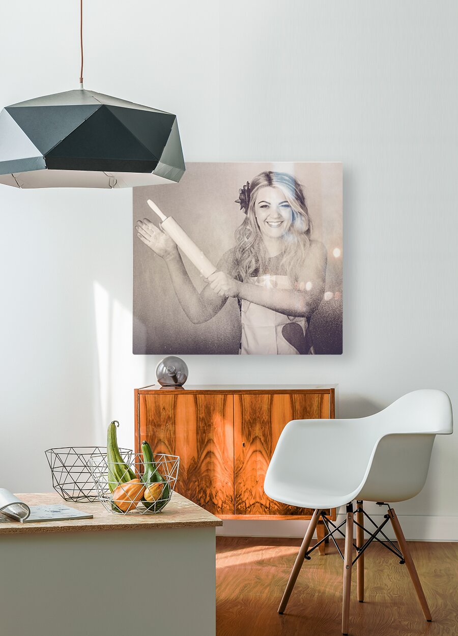 Vintage rolling pin up girl making cooking fun Picture Frame Printing