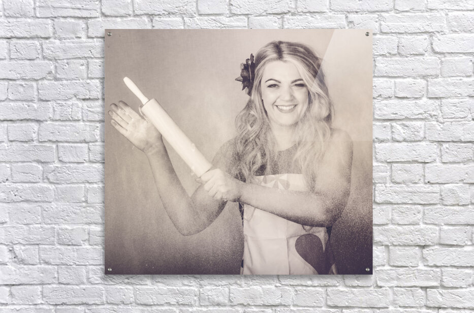 ABOUT THIS ARTWORK: VINTAGE ROLLING PIN UP GIRL MAKING COOKING FUN