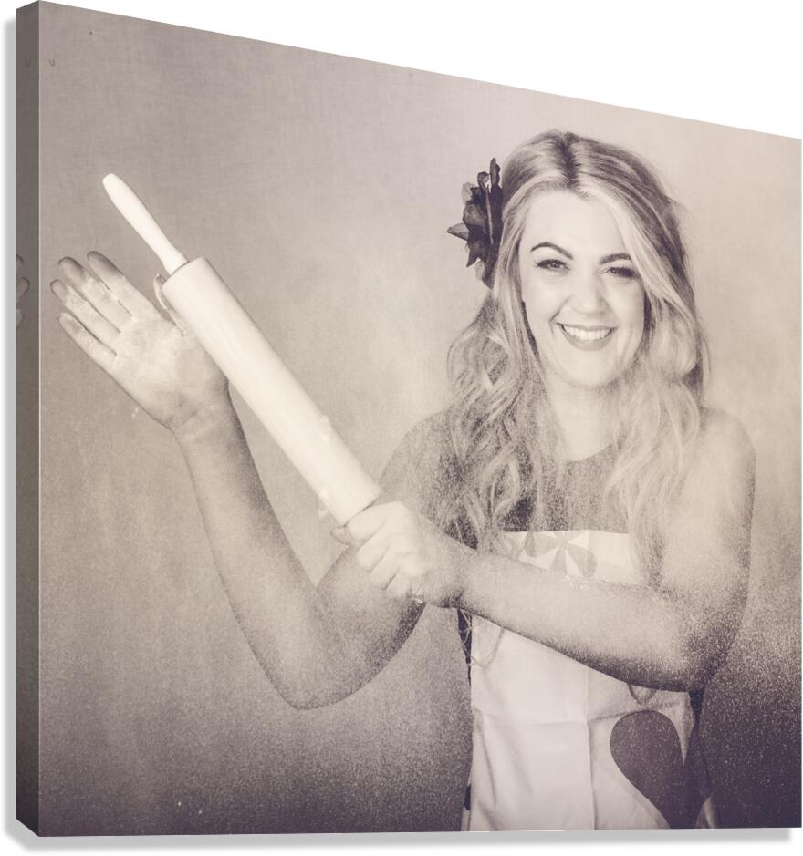 Get this artwork "Vintage rolling pin up girl making cooking fun" in a framed print.