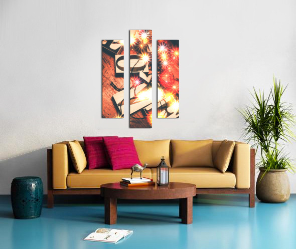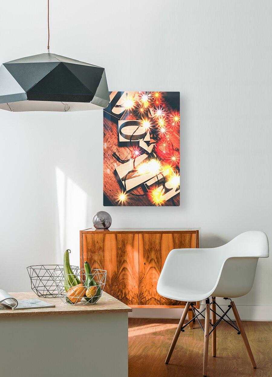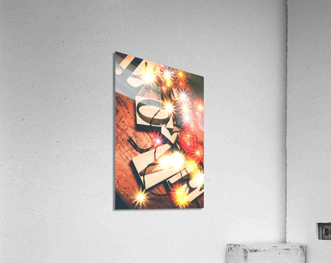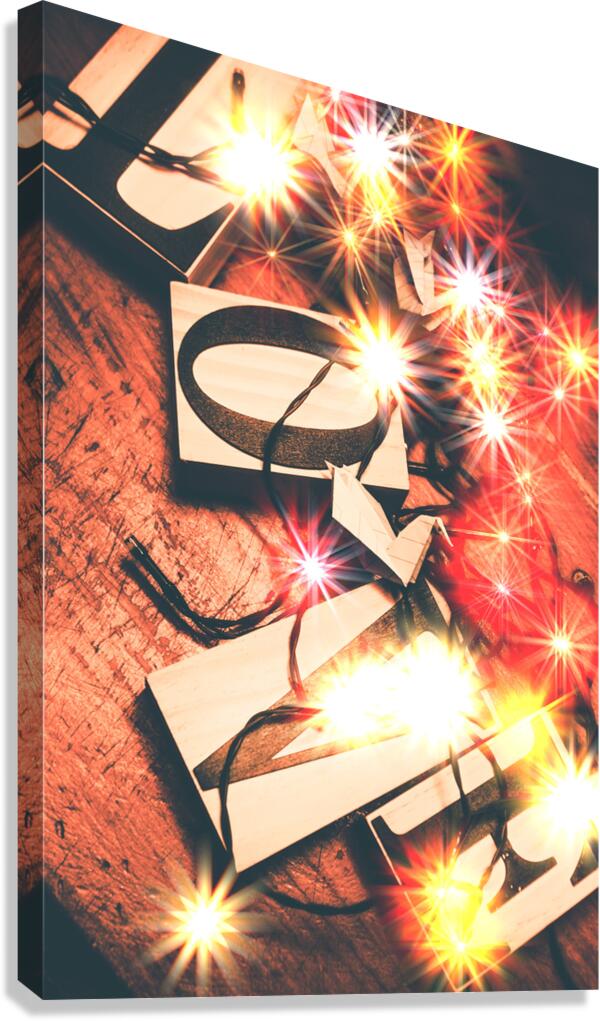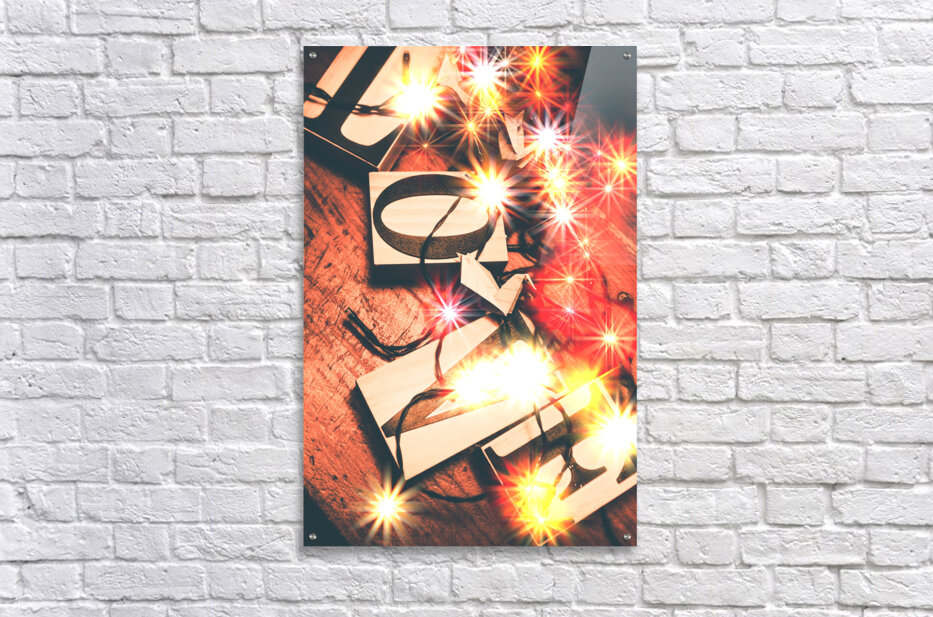 Creative still life scene of wooden letters spelling out the love of festivities. With love and lights