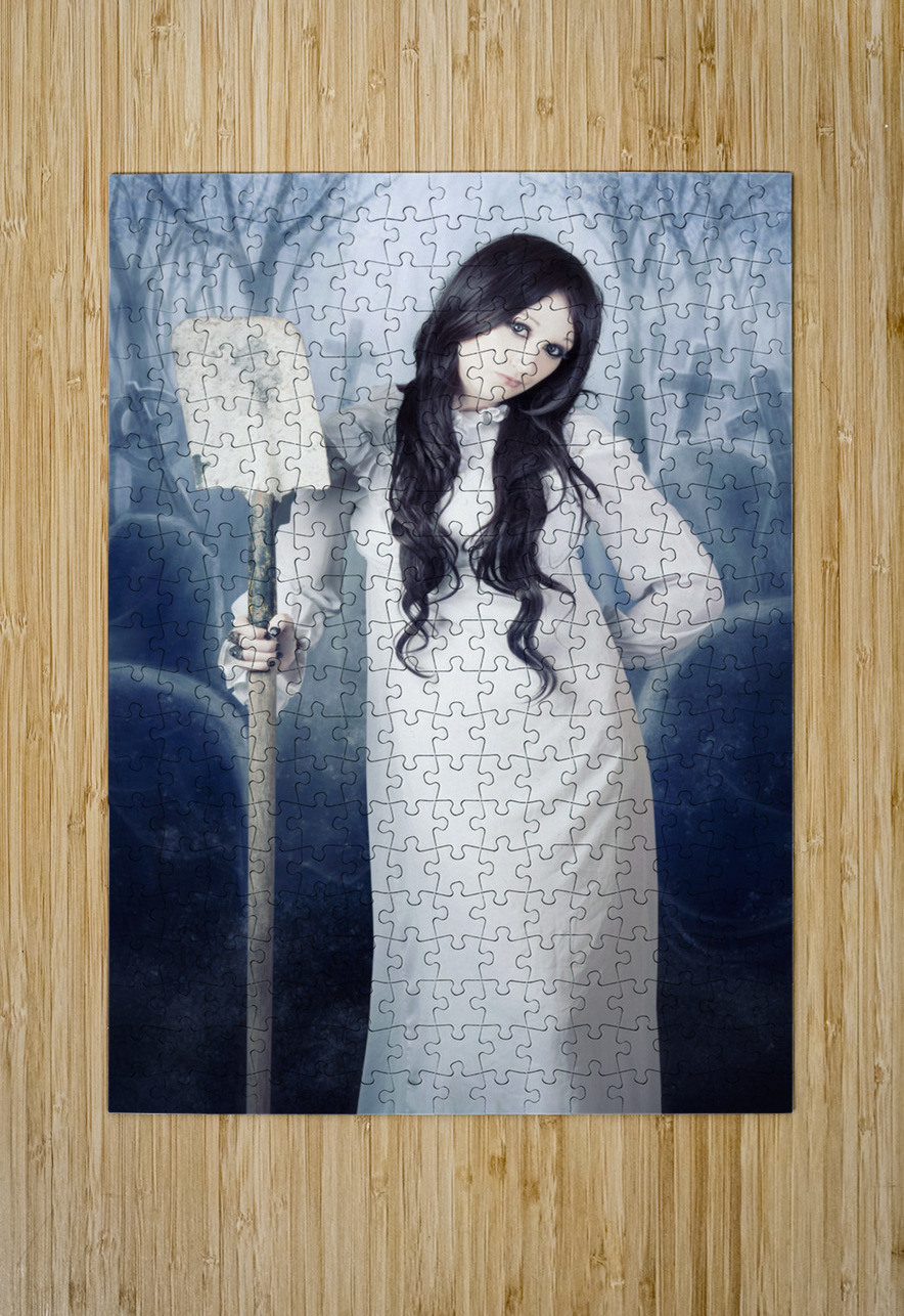 Spooky witch gravedigger with spade in graveyard Jorgo Puzzle printing